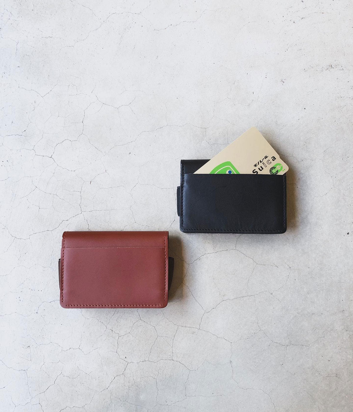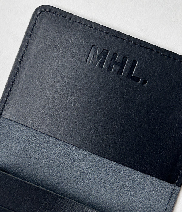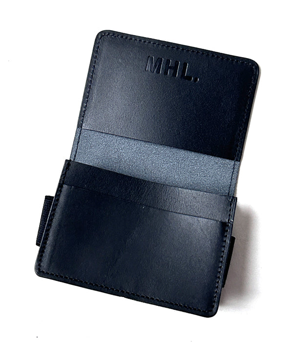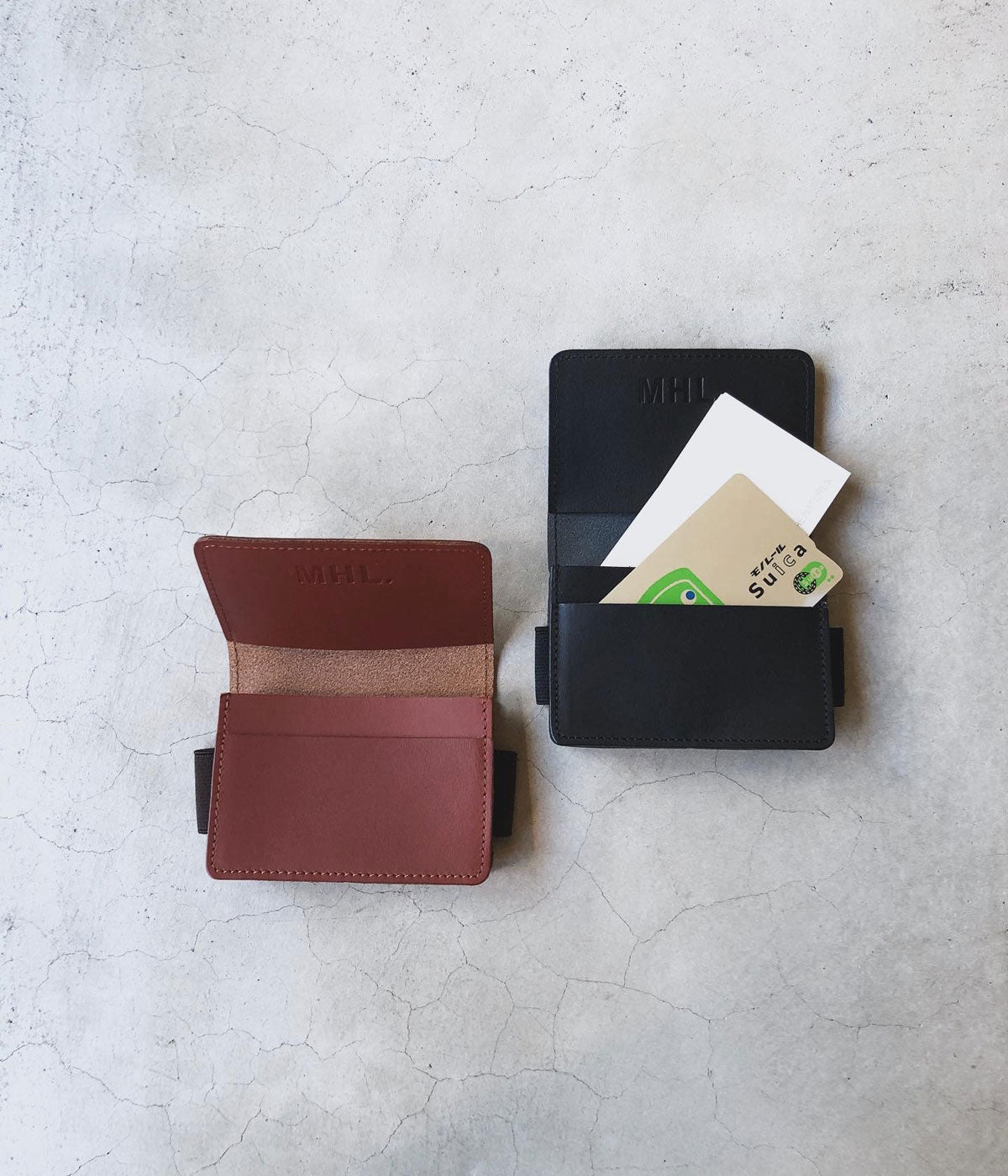 MHL.から、SMOOTH LEATHER CARD CASEが入荷しました。滑らかな表情が特徴のレザー製カードケース。傷が目立ちにくい加工がされており、長年の使用にも耐えうるタフな作り。収納箇所が多く実用的で、本体に縫い込んだゴムストラップでフラップを留めるデザイン。内側のMHL.の型押しロゴがポイントです。