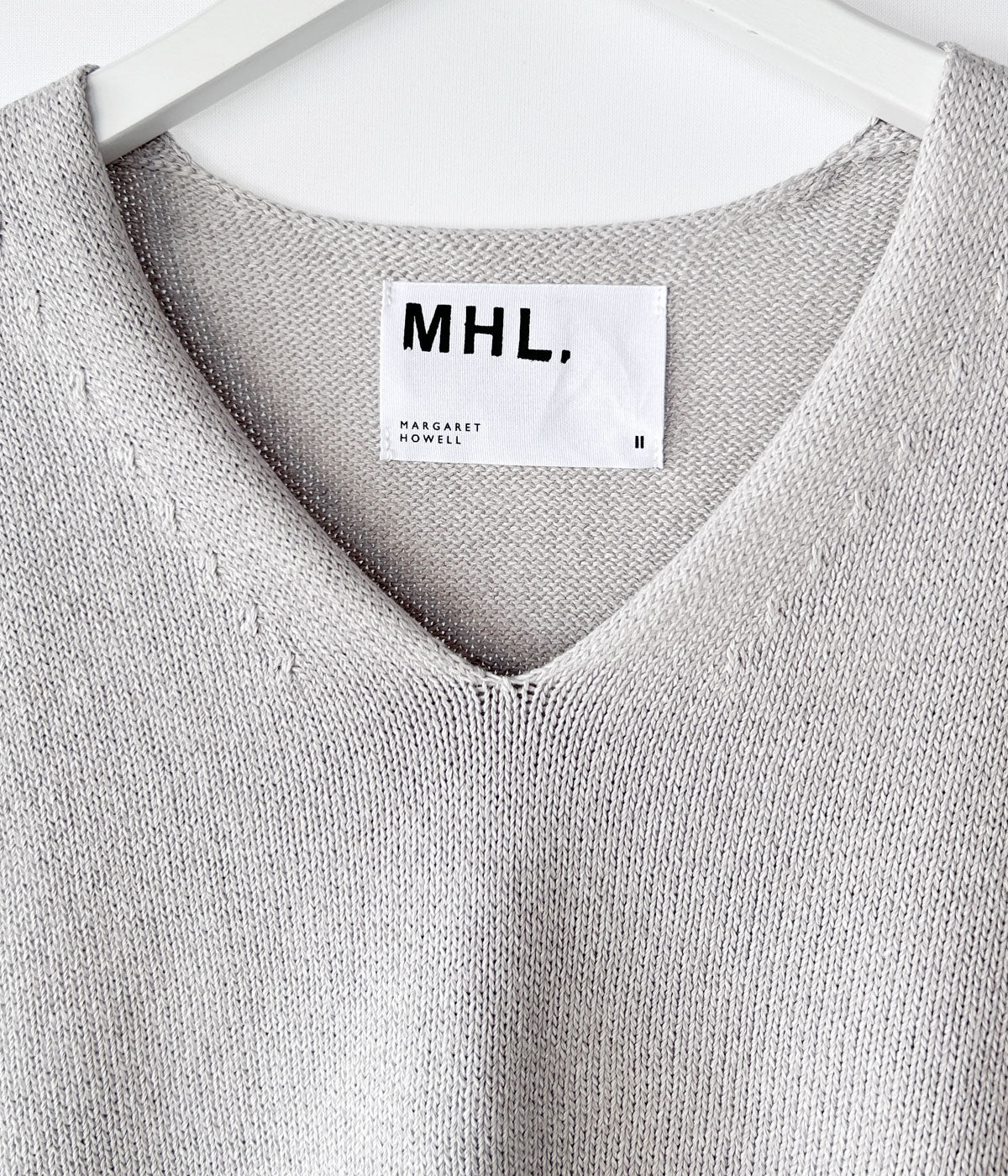 MHL.から、WA-SHI COTTON KNIT VEST WOMENSが入荷しました。オーガニックコットンと和紙をミックスしたニット素材を使用したベスト。紙のシャリっとした質感が清涼感を与え、コットンの柔らかさが着心地の良さを保証します。裾の編立が美しく、裾のスリットや厚めの袖リブなどデザイン性の高い1着。