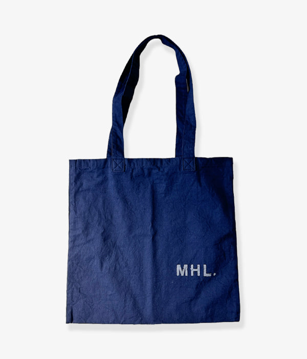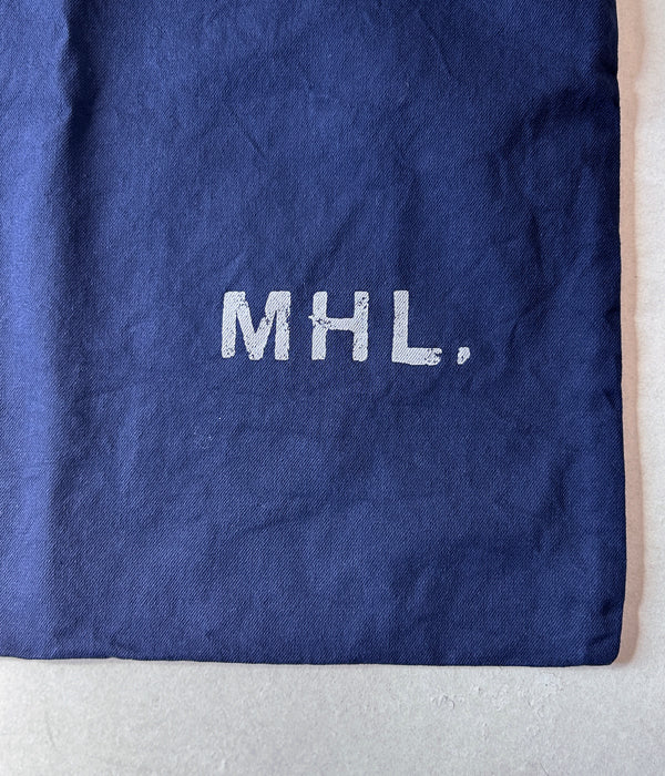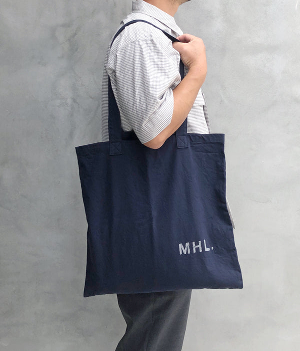 MHL.から、YARN DYE COTTON TWILLが入荷しました。マチの無いシンプルで使い勝手の良いトートバック。肩掛け余裕なハンドルと、内側に隠したコールバックのような手持ち用ハンドルを設けた2WAY仕様。特殊な紡績で作られた軽やかなコットン製。シーズンごとに展開される定番アイテム、MHL.LOGOがアクセント。
