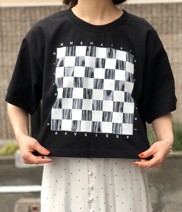 MM6 MAISON MARGIELA/CHECKERS PRINTED SHORT TEE(BLACK)