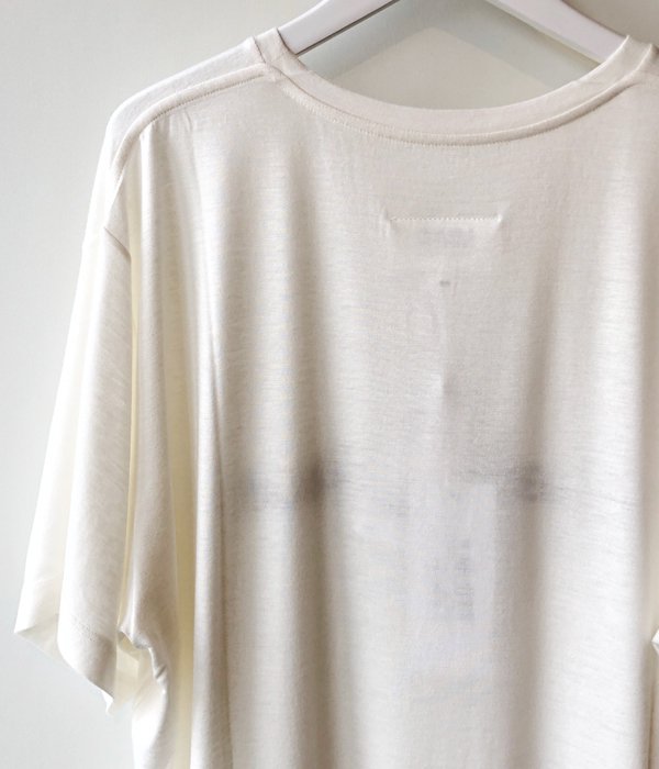 MM6 MAISON MARGIELAからINSIDEOUT LOGO TEE(WHITE)が入荷しました。内側に施されたMM6ロゴプリントが反転したTシャツは、「内からの視点」というデザインにおけるメゾンの普遍的なテーマを表現しています。シアーでソフトな素材感、ゆったりリラックスしたシルエットが心地良い一枚。
