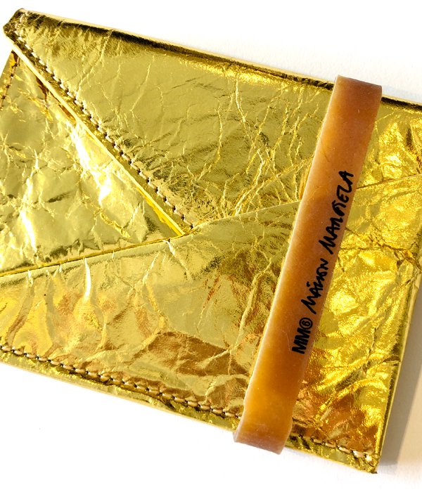 JAPANESE BAGからインスパイアされた封筒型カードホルダー。シワ加工したメタリックレザーとゴム製のバンドとのコントラストや、アシンメトリーなデザインが面白い。目を惹くカラーリングでBAGの中でも迷子にならなさそう。