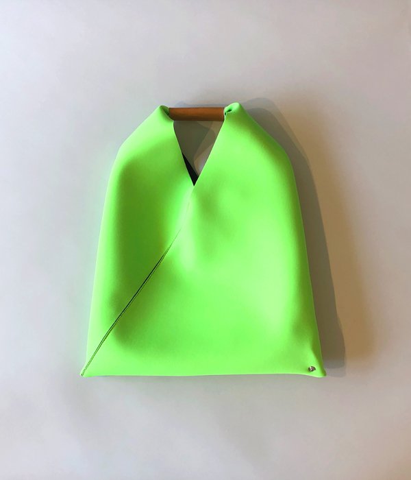 MM6のアイコン的バッグ、JAPANESE TOTE BAGのMINIサイズ。色鮮やかなネオプレン素材を使用し、軽量ながら収納力はばっちり。底部のスナップボタンでフォルムを変えられる面白いデザイン。