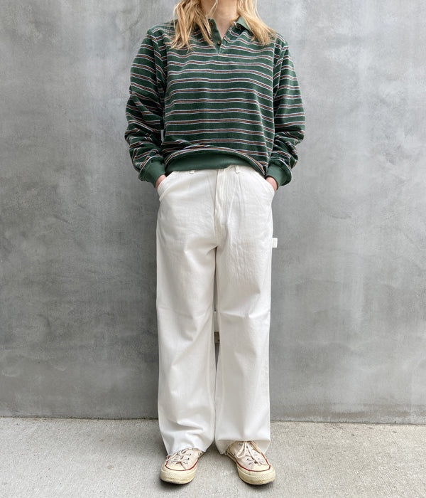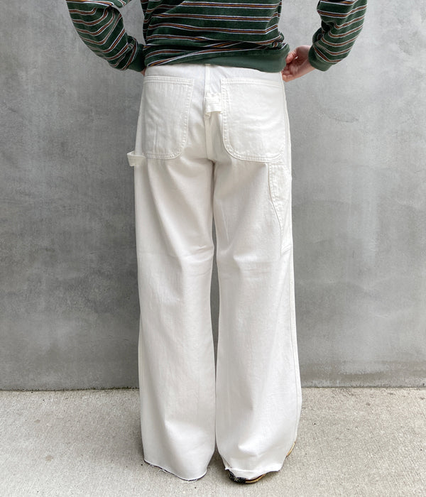 nowosからCARPENTER PANTSが入荷しました。春夏に向けて少し薄手のカーペンターパンツ。腰で落として履くイメージ。裾は切りっぱなしで雰囲気◎。合わせやすい白のボトムは持っておきたい1本です。