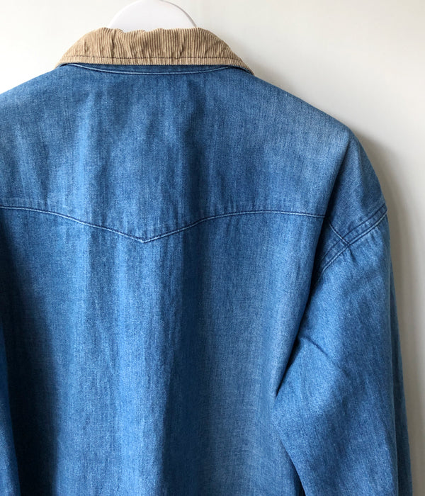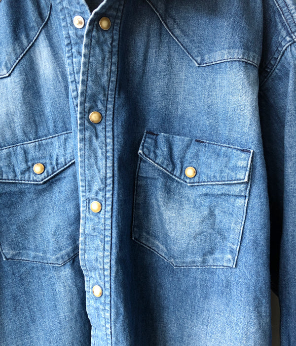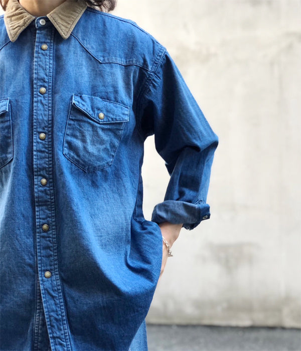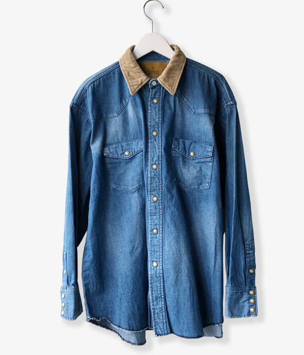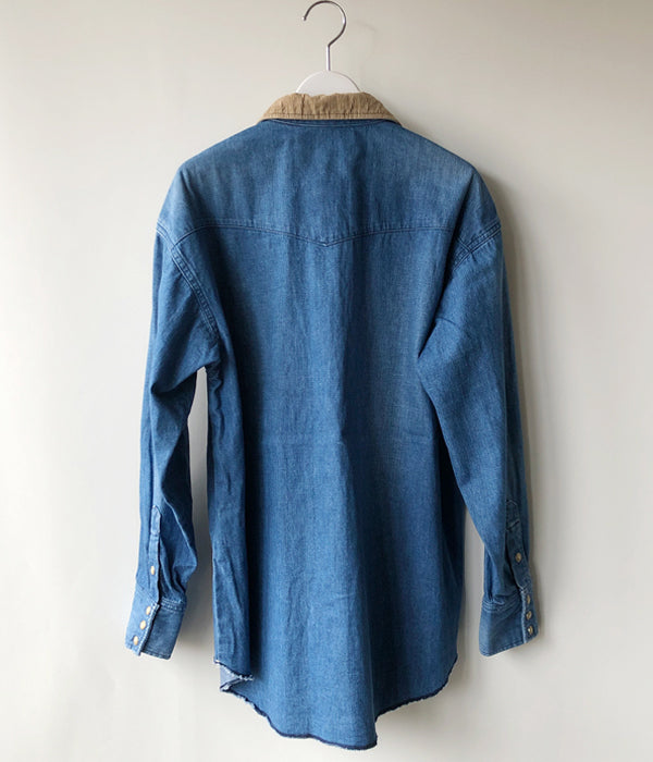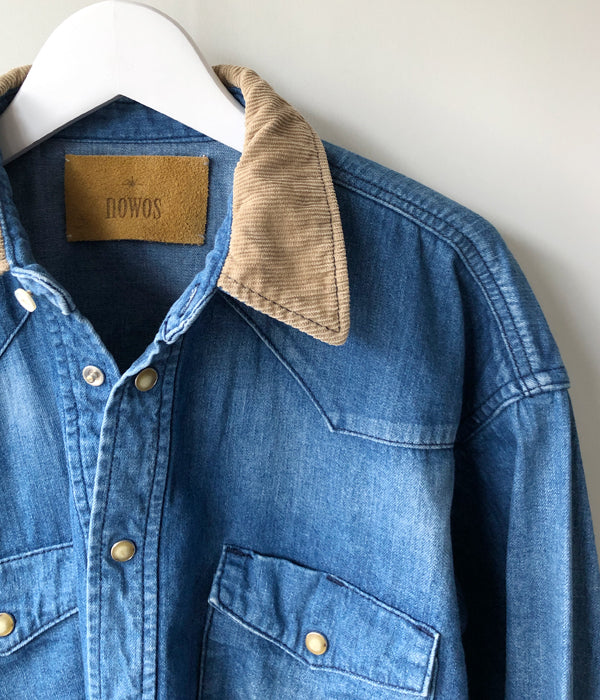 nowosからDENIM OVERSIZED SHIRTが入荷しました。ウエスタン仕様のデニムシャツ。襟がベージュのコーデュロイになっており雰囲気抜群。閉めて着るのはもちろん、インナーはタンクトップでさらりと羽織ったり。着回しのきく一枚です。