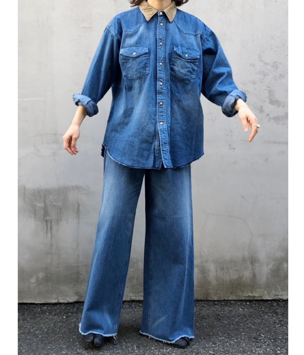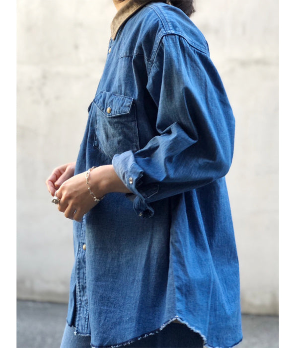 nowos/DENIM OVERSIZED SHIRT(INDIGO)