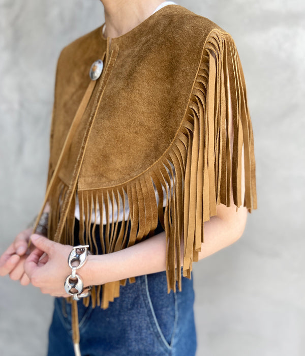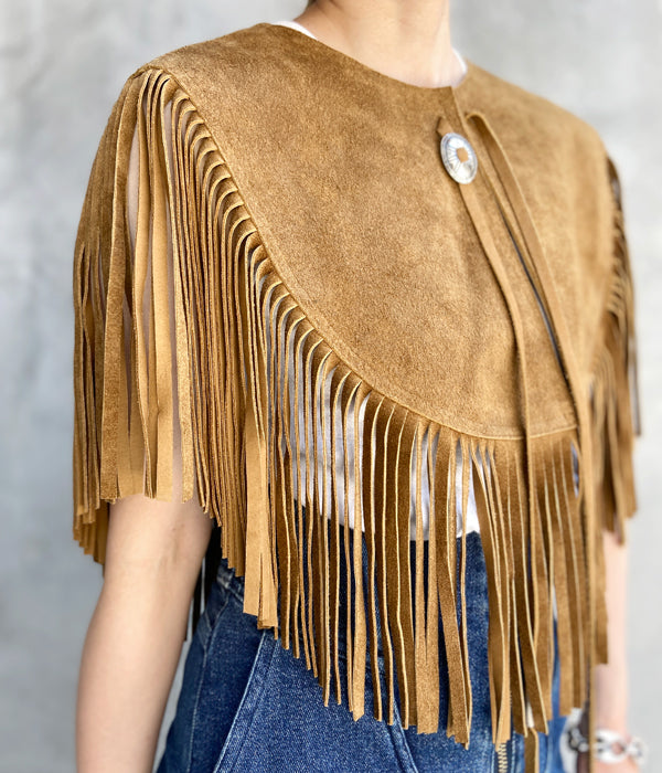 nowosからFRINGE PONCHOが入荷しました。牛革のスウェードポンチョ。フリンジにコンチョがより土臭さを演出。いつものコーディネートにプラスするだけで新鮮な印象です。今季一押しのアイテム。