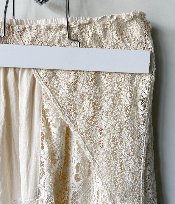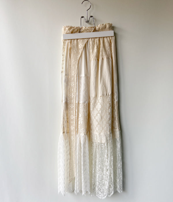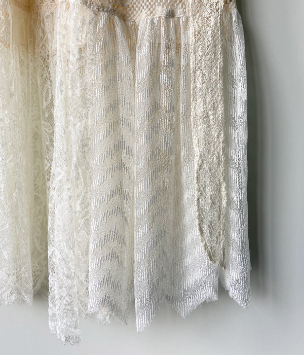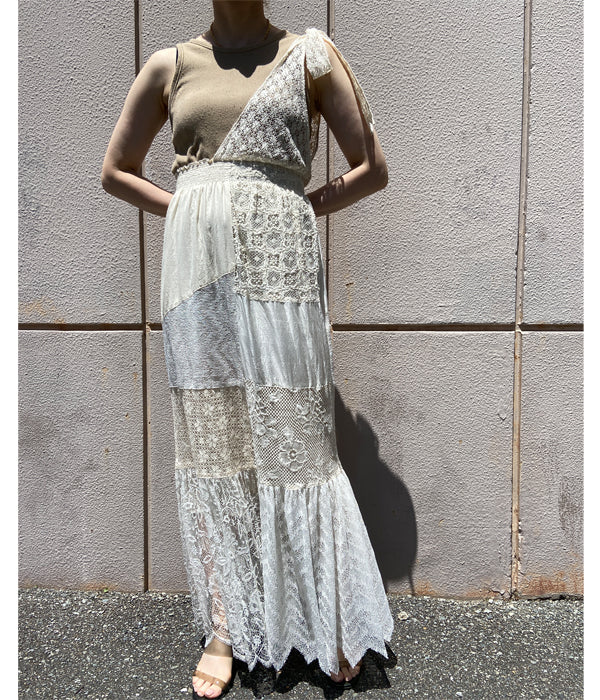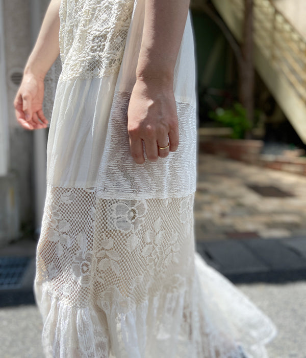 nowosからLACE DRESSが入荷しました。nowosが得意とするヴィンテージライクなレースドレス。ワンショルダーの紐を結んでドレスにしたり、垂らしてスカートにしたり、着方は様々。コーディネートのポイントとなる貴重な一枚です。ペチコート付き。