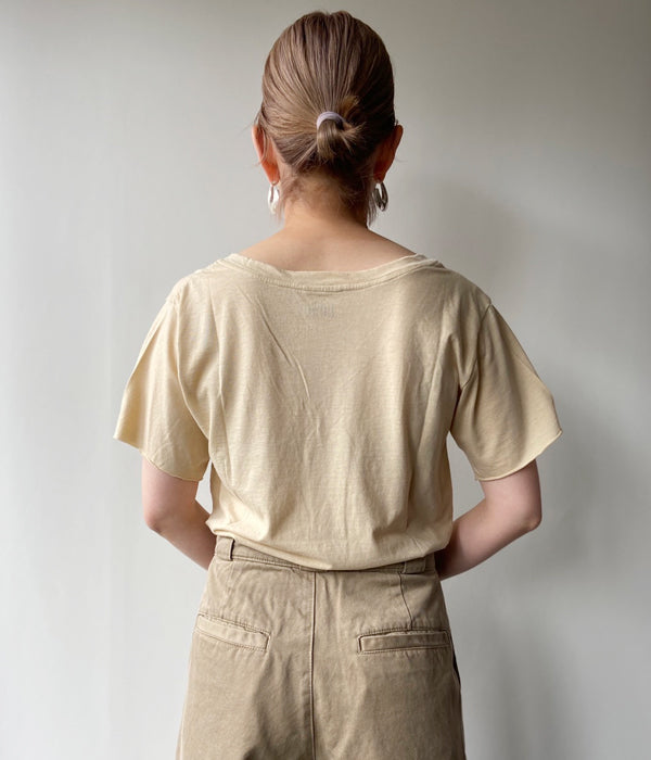 nowosからV NECK TEEが入荷しました。大きく開いた襟元に、切りっぱなしの裾でナチュラルかつ大人の雰囲気。さらりとシンプルに着るだけで決まる一着は重宝すること間違いなし。nowos定番の人気アイテムです。