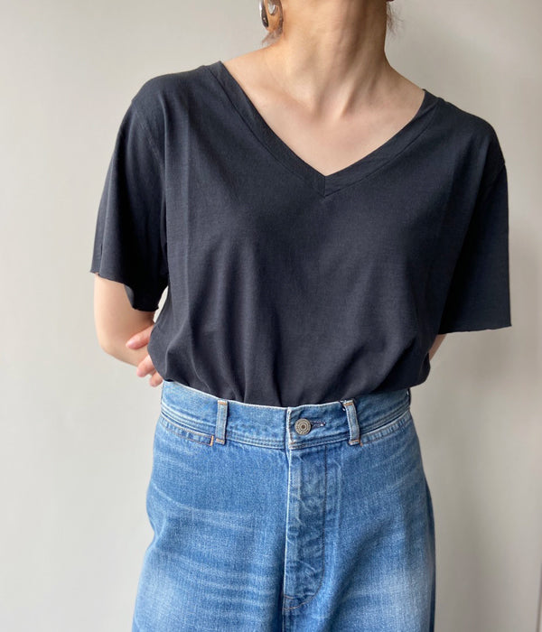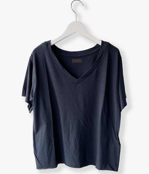 nowosからV NECK TEEが入荷しました。大きく開いた襟元に、切りっぱなしの裾でナチュラルかつ大人の雰囲気。さらりとシンプルに着るだけで決まる一着は重宝すること間違いなし。nowos定番の人気アイテムです。