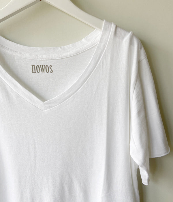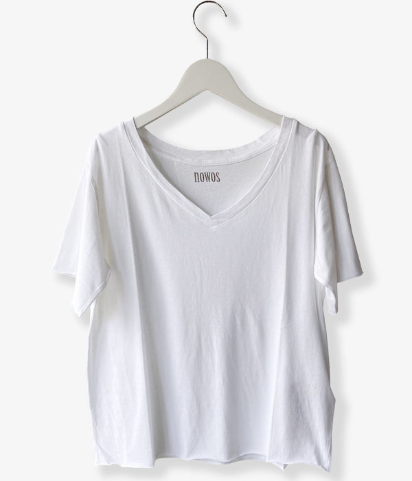 nowosからV NECK TEEが入荷しました。大きく開いた襟元に、切りっぱなしの裾でナチュラルかつ大人の雰囲気。さらりとシンプルに着るだけで決まる一着は重宝すること間違いなし。nowos定番の人気アイテムです。