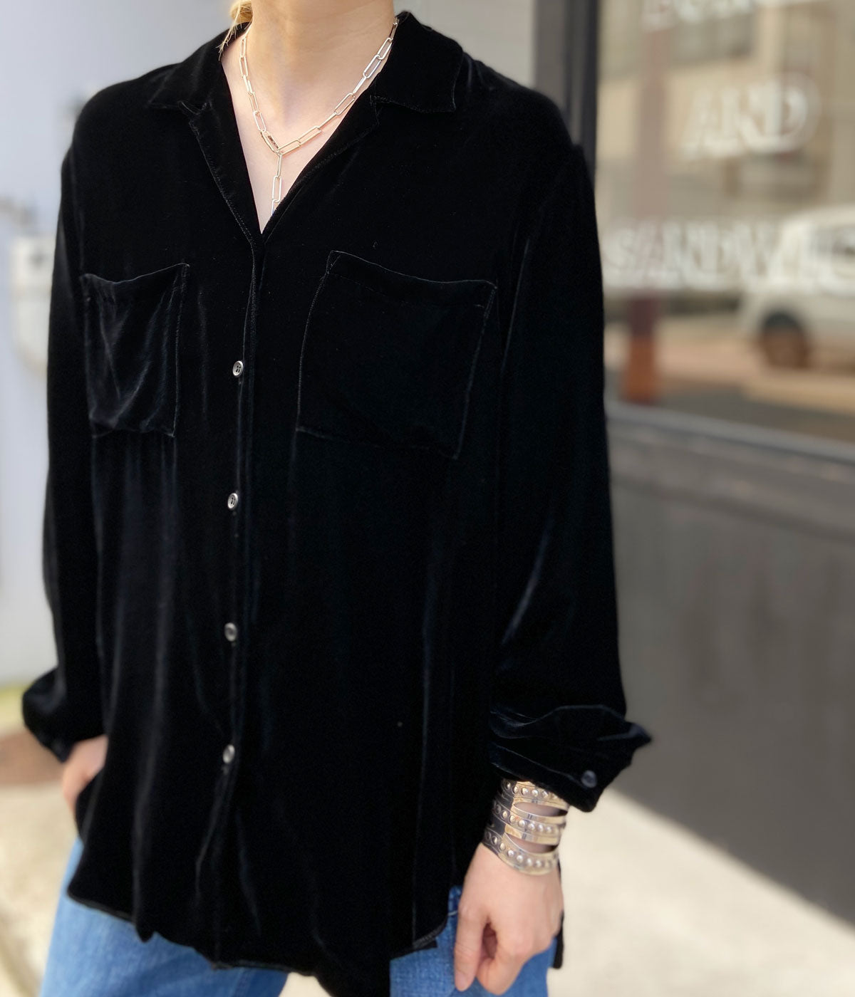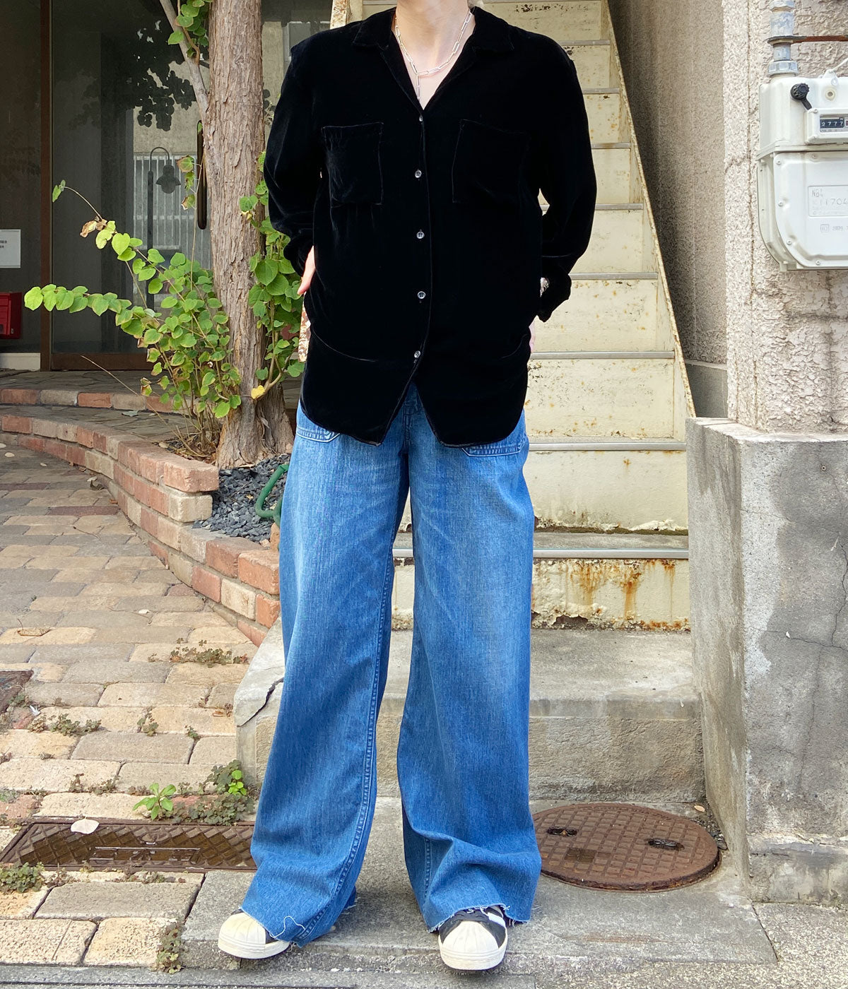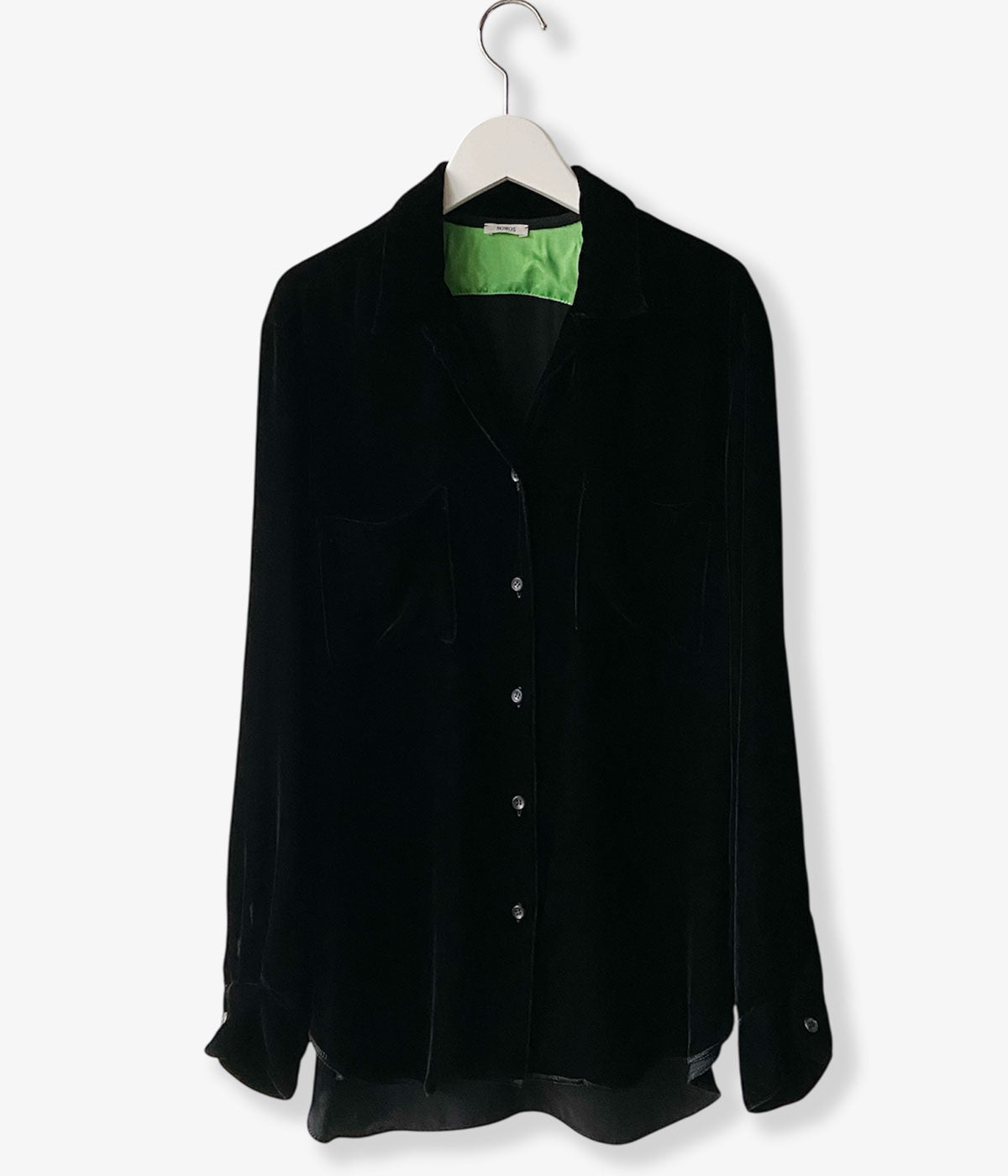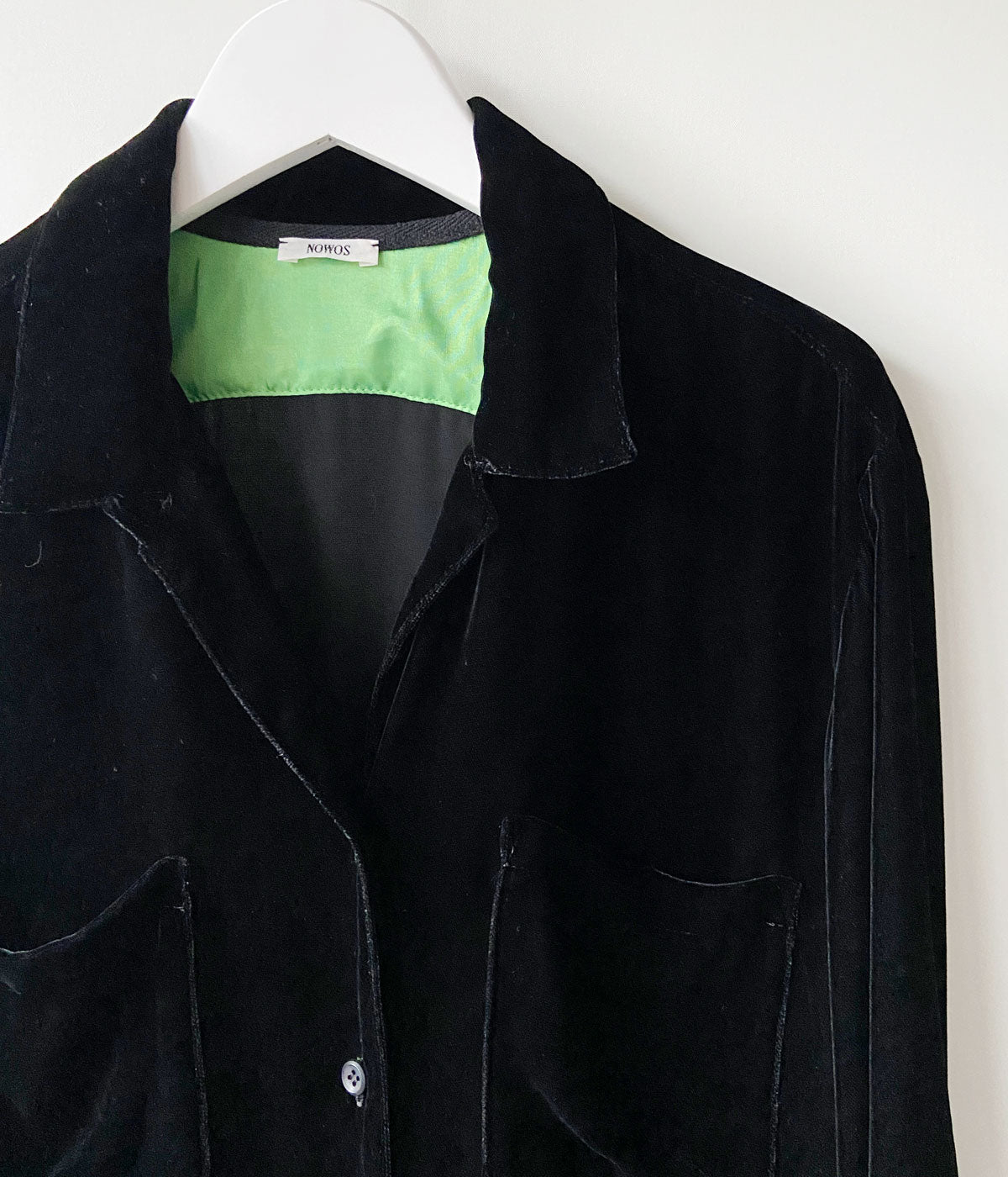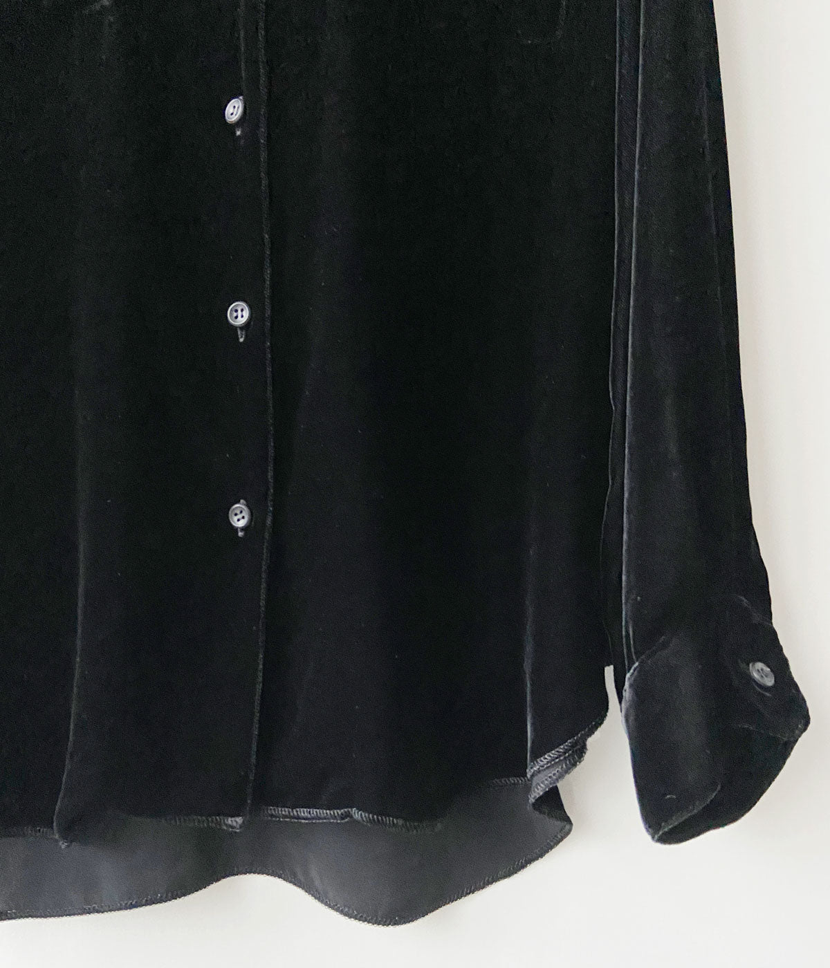 nowosからVELOUR SHIRTが入荷しました。滑らかな肌触りのベロアシャツ。ゆったりとしたサイズのカジュアルなシルエットに、黒々としたベロアの美しい光沢の対比が面白い。カジュアルにもフォーマルにも〇。着回しの効く一枚です。