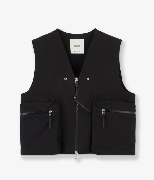 OAMC × Goldwinから、VESTが入荷しました。適度な光沢を与えた落ち着いた雰囲気の質感が特徴のコットン生地を使用したベスト。カラーレスのVネックに、ファスナー開きのフロントデザイン。ファスナー付きの立体的な大きなポケットがポイントです。商品情報を手書きしたコラボレーションラベルがポイント。