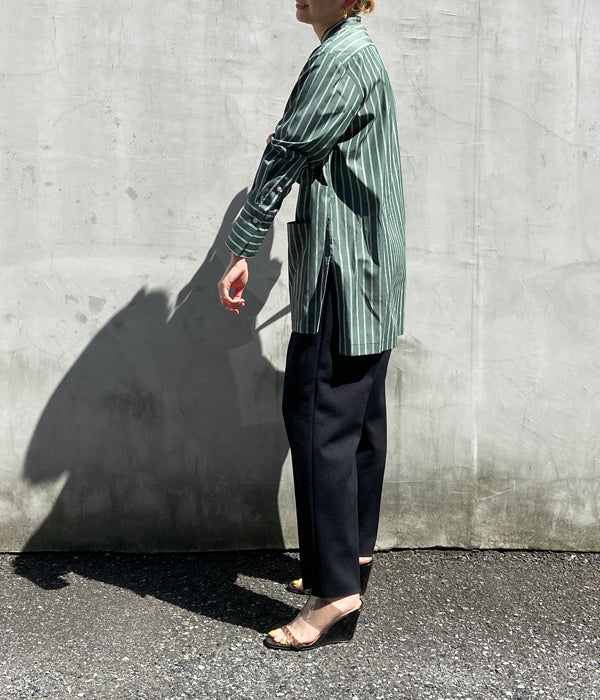 PHEENYからAMUNZEN HIGH WAIST TAPERED PANTSが入荷しました。ツータックを入れ、ヒップ周りにゆとりを持たせた人気のテーパードシルエットパンツ。生地に伸縮性があるのでリラックスした履き心地ですが、見た目は布帛のスラックスを履いているかのような仕上がり。裾は截ち切りになっておりセルフカットが可能。洗濯しても型崩れしにくく、速乾性も兼ね備えています。
