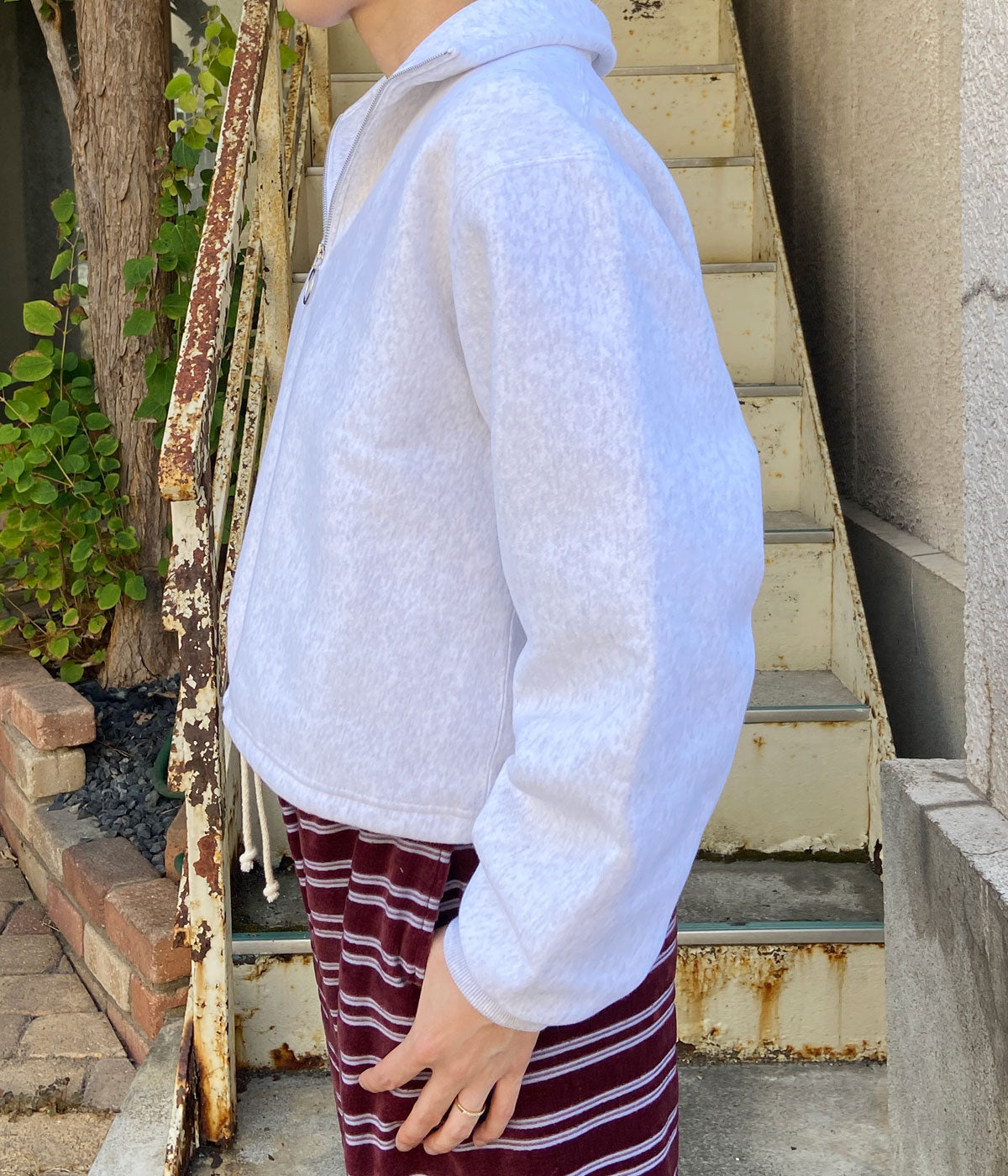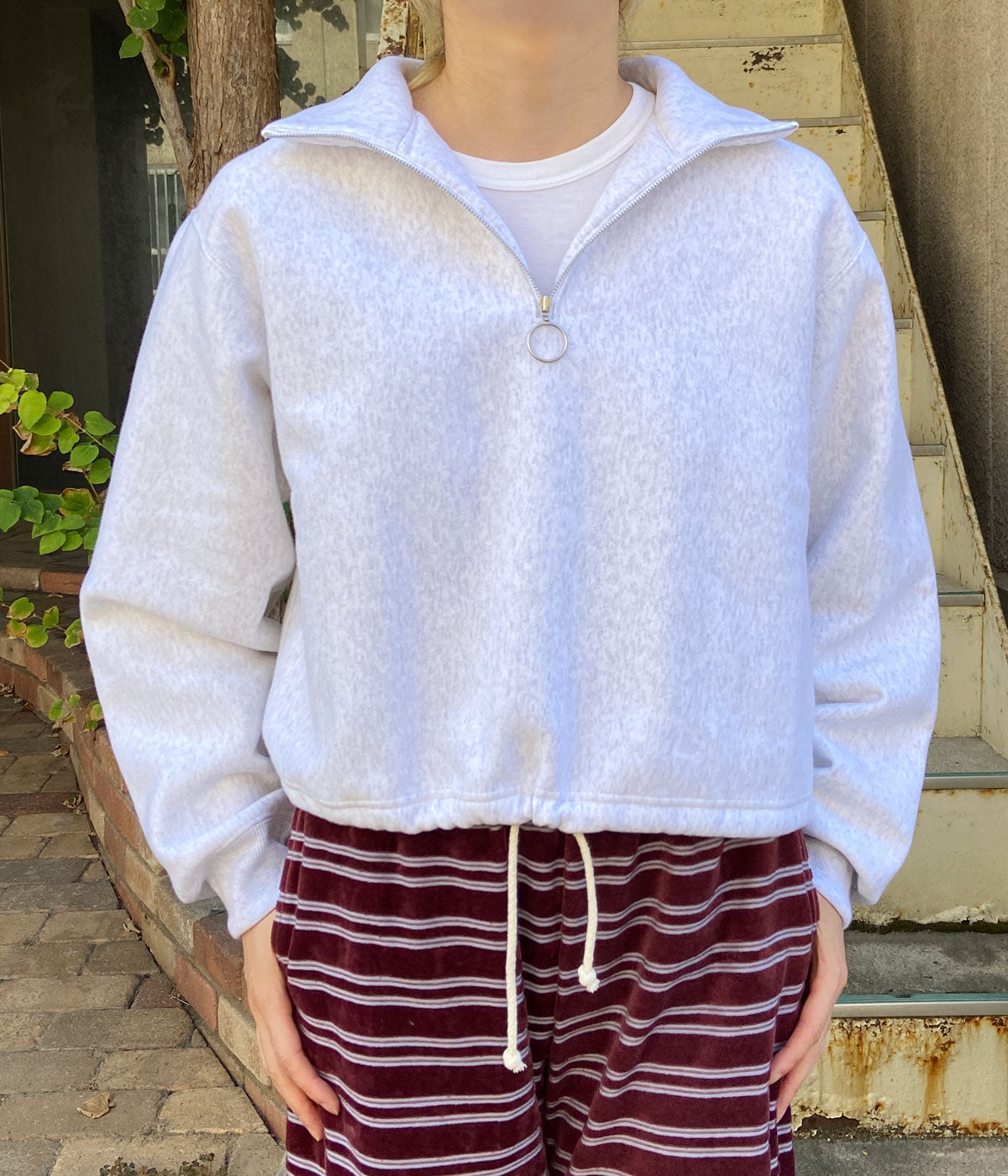 PHEENY/ATHLETIC FLEECE HALF ZIP P/O SHORT(GRAY)