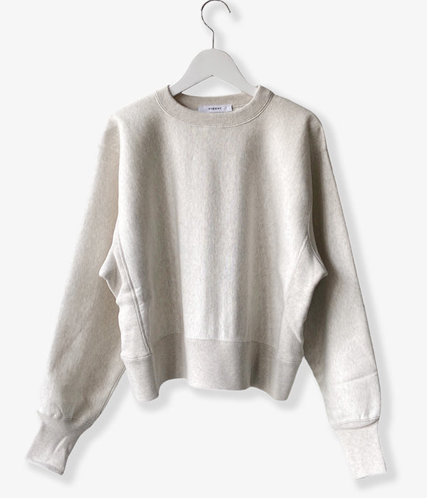 PHEENYからATHLETIC FLEECE L/Sが入荷しました。ショート丈のクルーネックプルオーバー。ボリュームある身巾とショート丈によりバランスよく着用できます。シャツとのレイヤードもおすすめ。着回しの利く便利な一枚です。