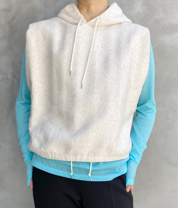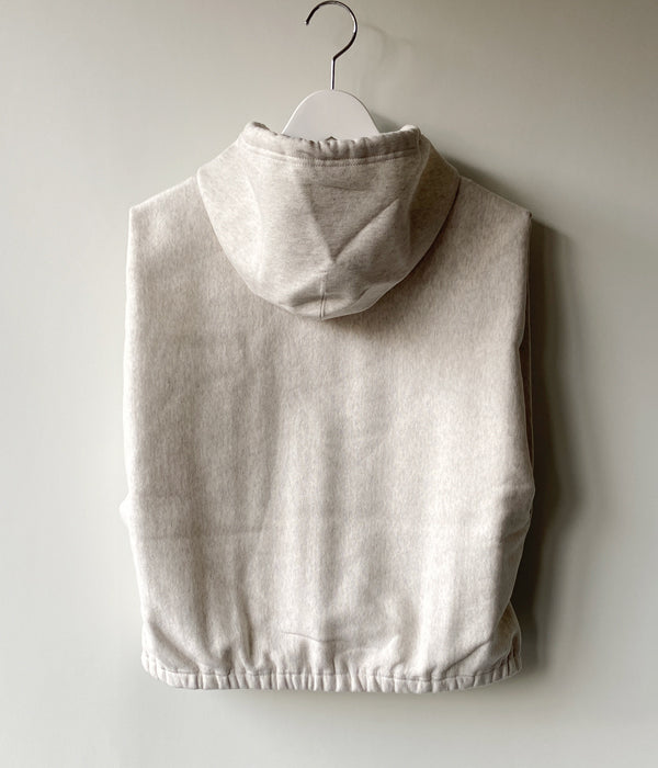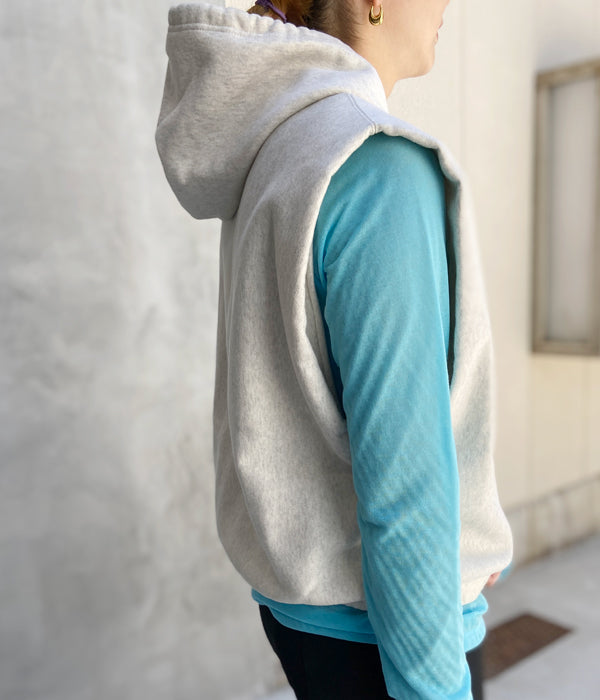PHEENYからATHLETIC FLEECE N/S HOODIEが入荷しました。ショート丈のノースリーブパーカー。ストレスフリーな一枚は休日やカジュアルな気分の日に最適。シーズンも幅広く着用可能。シャツやロンTと合わせてレイヤードを楽しめるアイテムです。