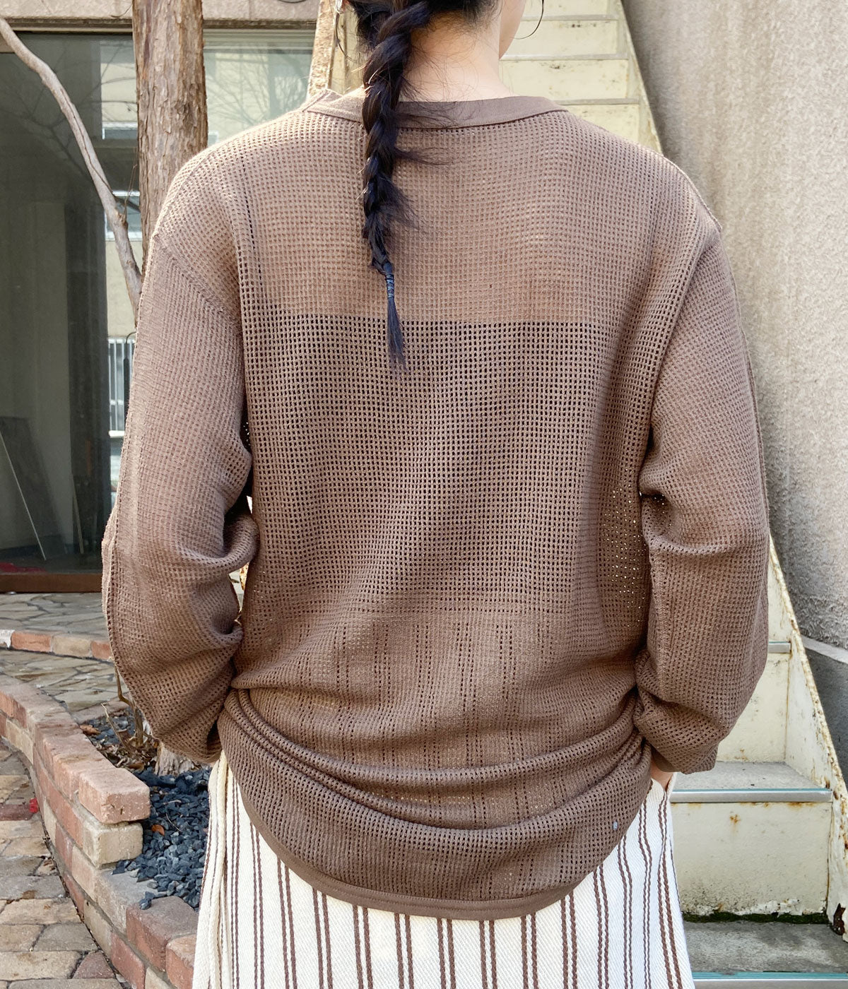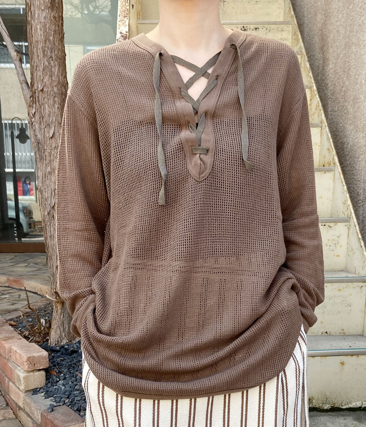 PHEENY/BASKET MESH LACE UP L/S(KHAKI)