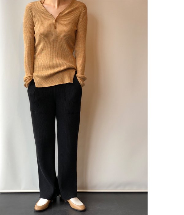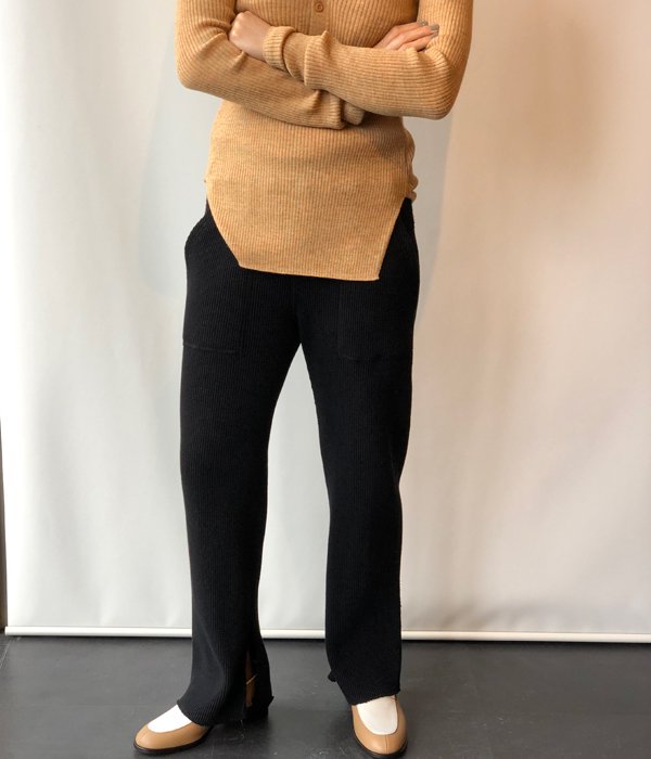 PHEENY/BIG WAFFLE SLIT PANTS (BLACK)(1)