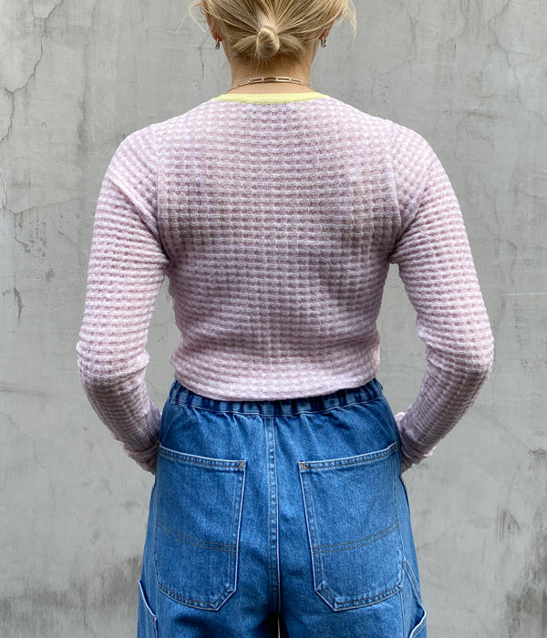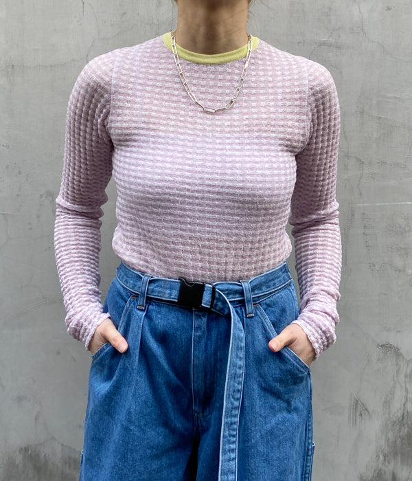 PHEENY/CHECK JACQUARD KNIT L/S(LAVENDER)