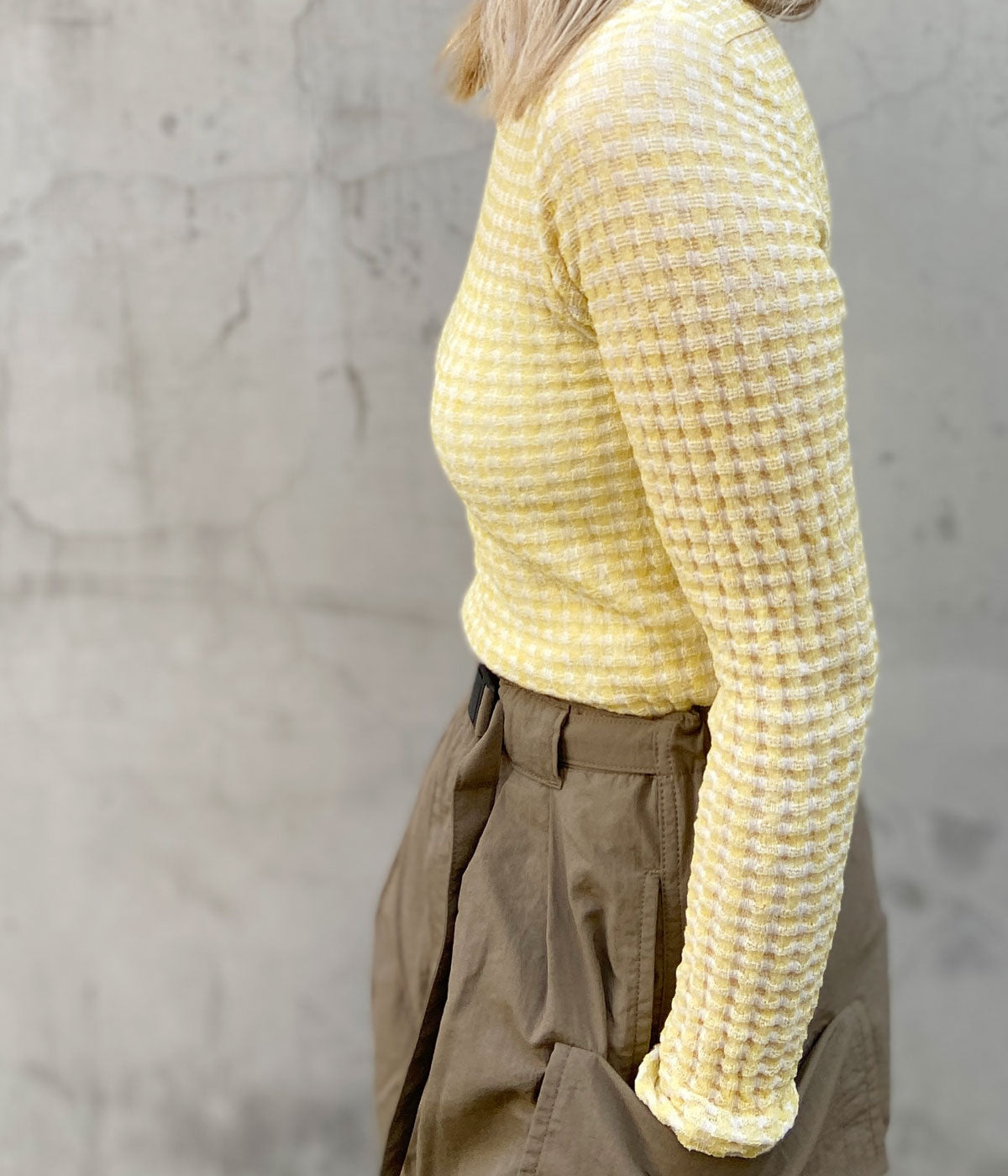PHEENY/CHECK JACQUARD KNIT L/S(YELLOW)