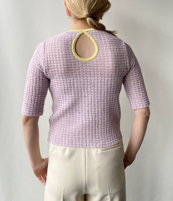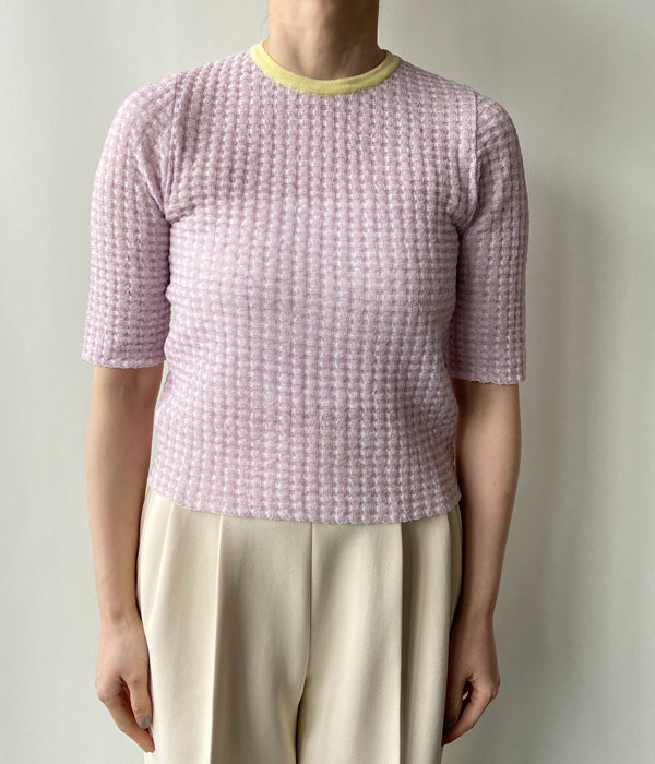 PHEENY/CHECK JACQUARD KNIT S/S(LAVENDER)
