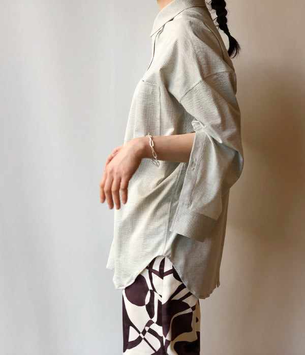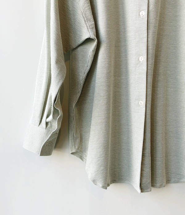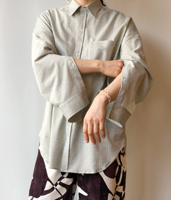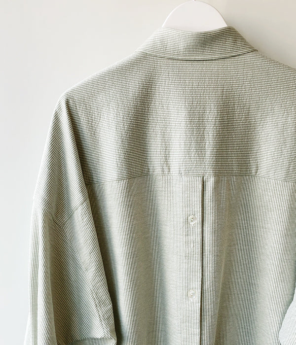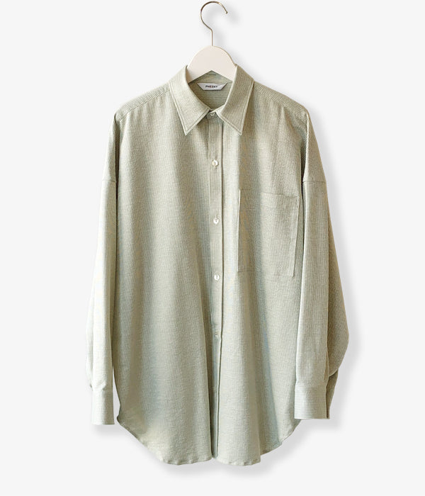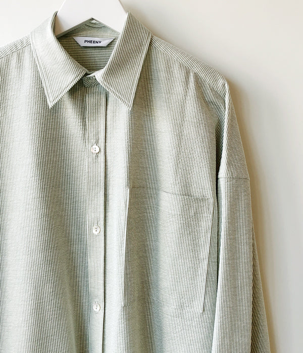PHEENY/COTTON LINEN STRIPE SHIRT(GREEN)
