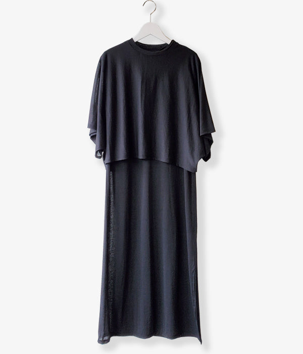 PHEENYからCOTTON NYLON SEER ENSEMBLEが入荷しました。21SSから継続の独特なシャリ感と透け感のある薄手の天竺を使用。ドルマンスリーブのショート丈トップスとノースリーブワンピースをレイヤードしたアンサンブルです。シアー感を生かして重ねた時の透け方や色の濃淡を楽しんだり、それぞれ単体でも着用可能。いろいろなシーンで使えて重宝する一着です。