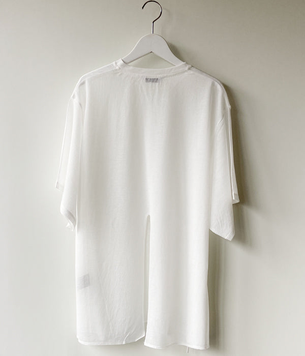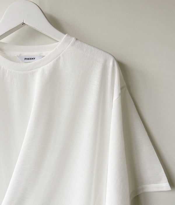 PHEENYからCOTTON NYLON SHEER DRAPE S/Sが入荷しました。シアー感のあるバックスリットTシャツ。シャリ感があり、サラッと肌離れもよく、夏でも快適に過ごせる一枚。身体を包むゆったりとしたシルエット。脇の紐でドレープを寄せたデザインです。