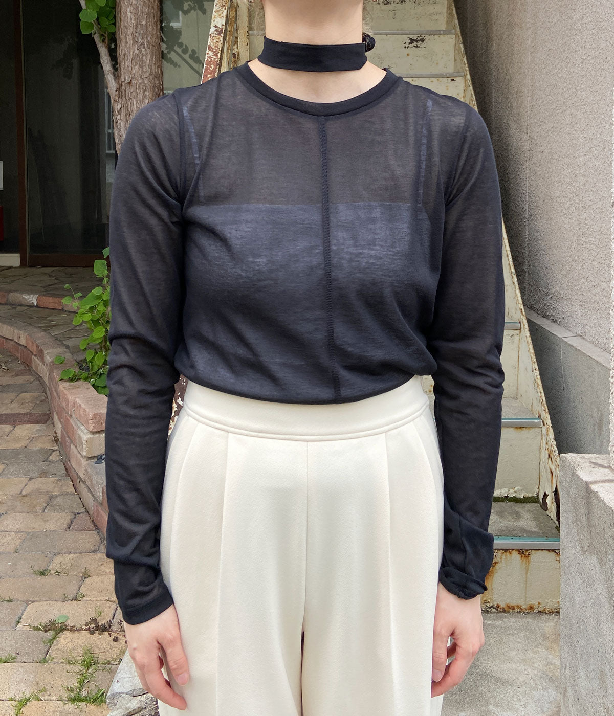 PHEENY/COTTON NYLON SHEER L/S(BLACK)
