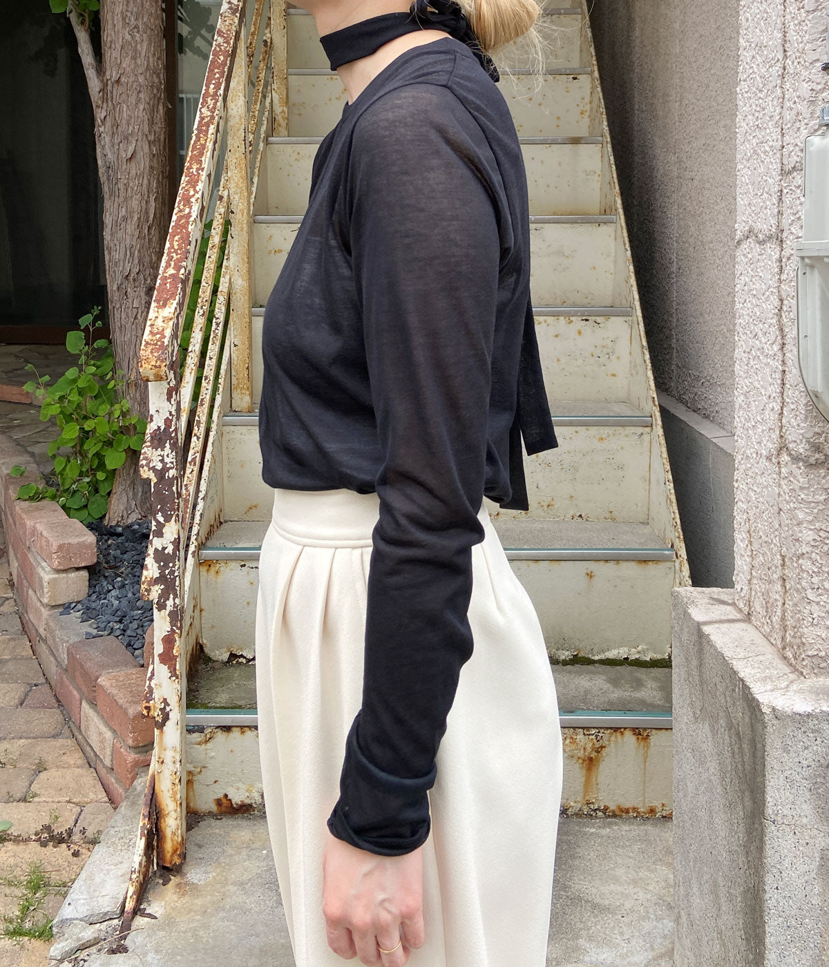 PHEENYからCOTTON NYLON SHEER L/Sが入荷しました。3年ぶりに復刻したシアー天竺のカットソー。スッキリとしたシルエットでクリーンに仕上げつつ、切替のフラットシーマーや、脇のスリットなど細部にニュアンスを加えた一枚。ボータイの巻き方で様々なアレンジが楽しめます。シャリ感があり、サラッと肌離れも良く、暑い夏でも快適に着用出来ます。