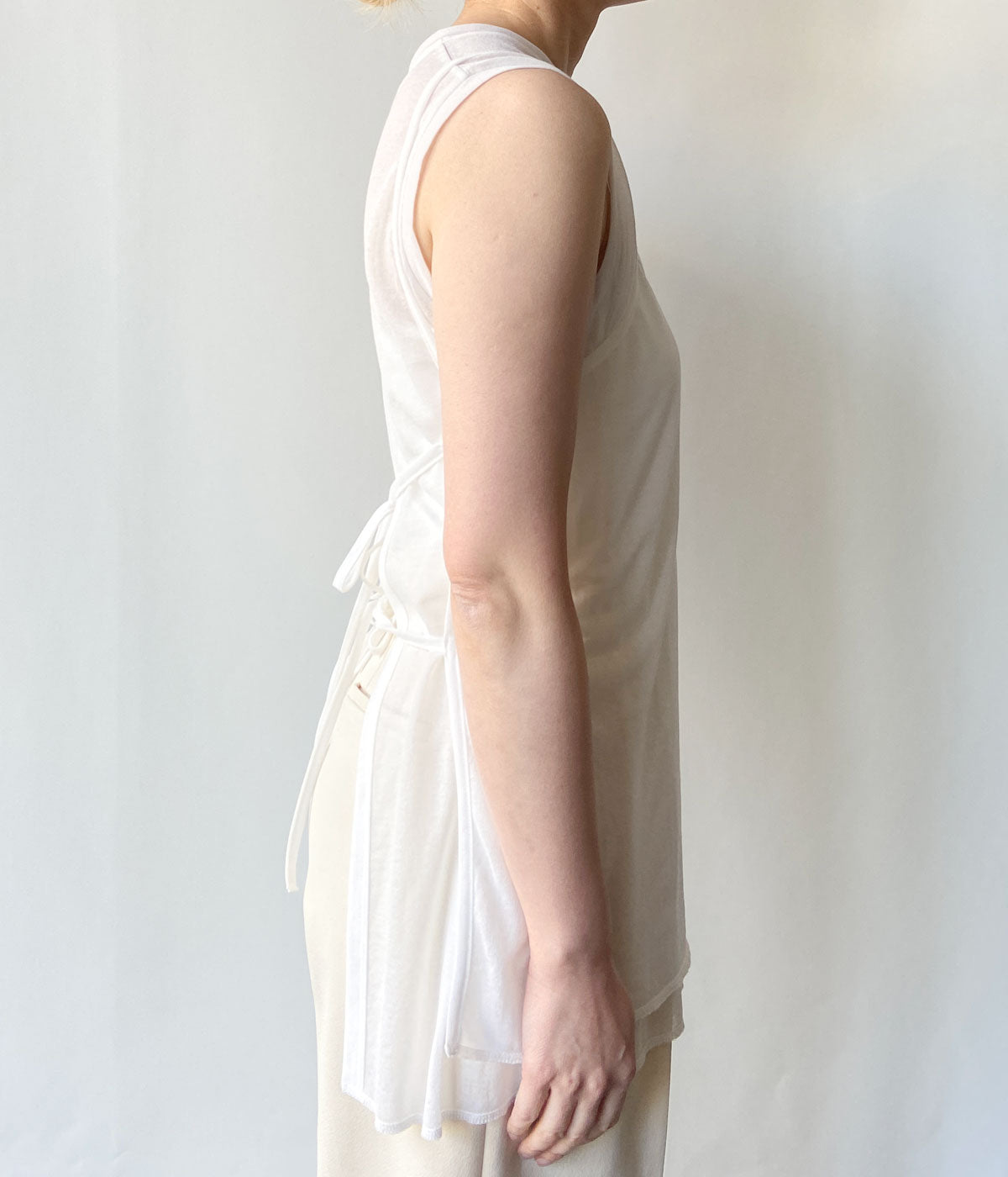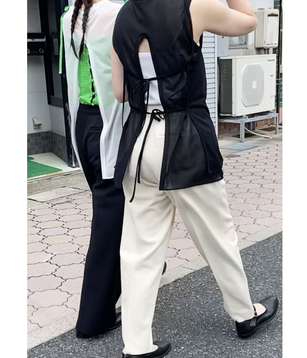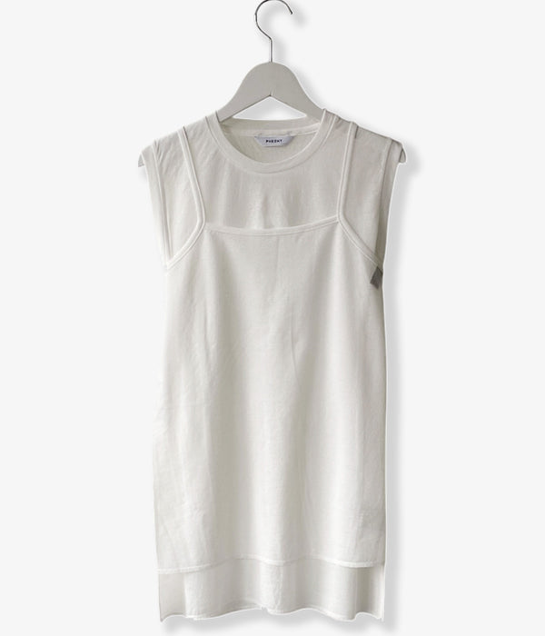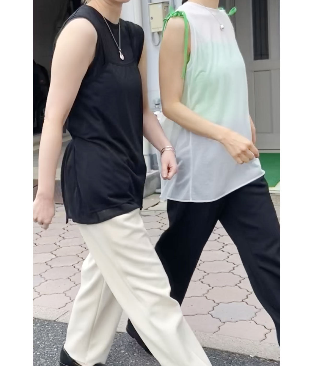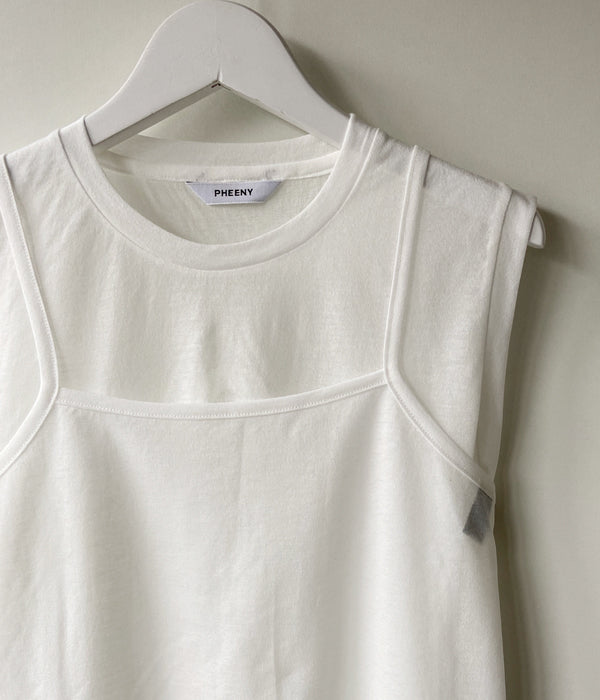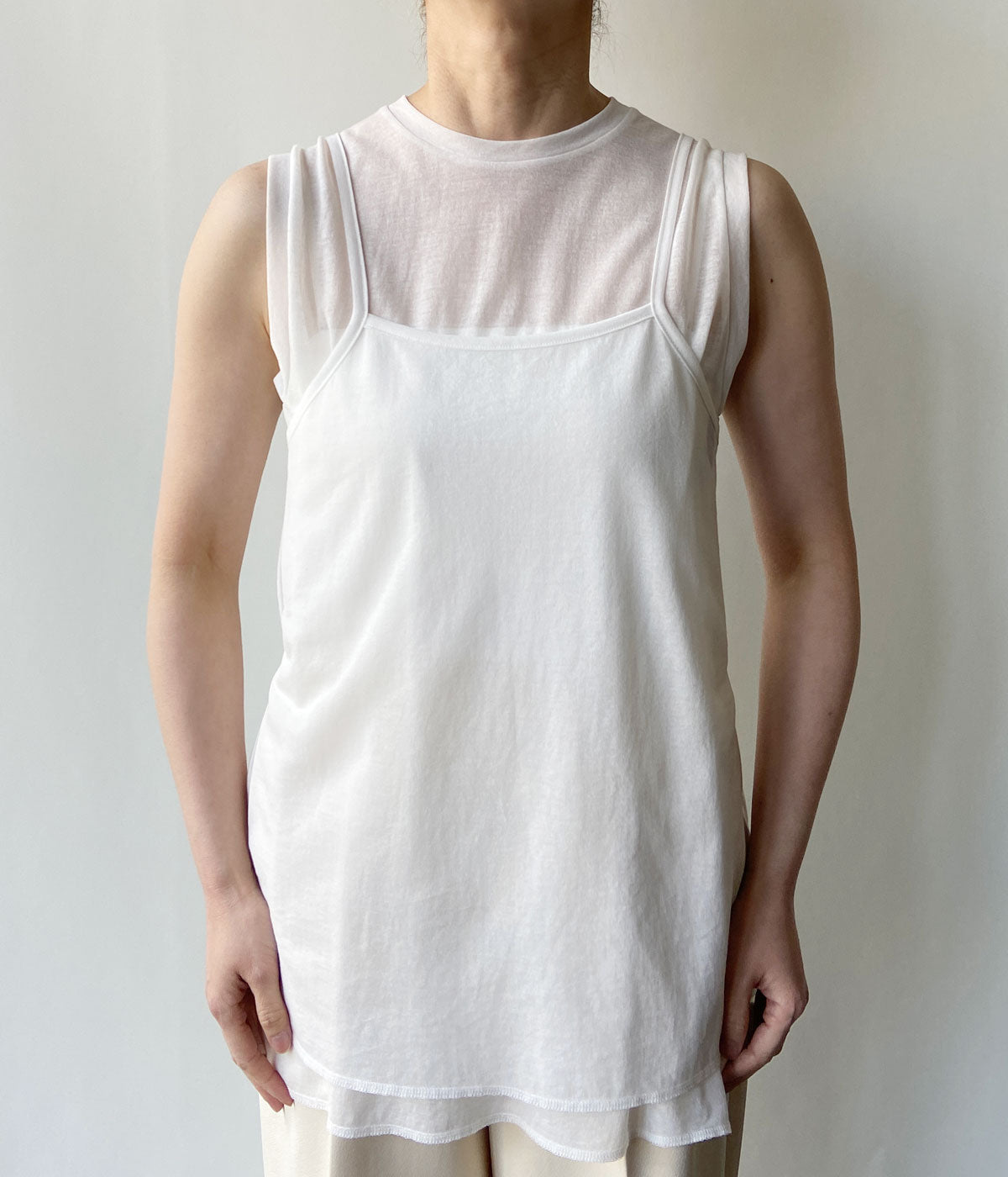 PHEENYからCOTTON NYLON SHEER N/S ENSEMBLESが入荷しました。シアー感のあるノースリーブとキャミソールのアンサンブル。バックスタイルが印象的です。もちろんバラバラに着用しても〇 シンプルな装いになりがちな夏に重宝する一枚です。