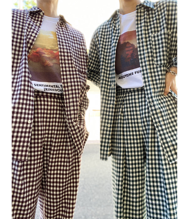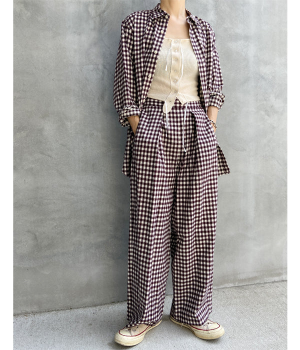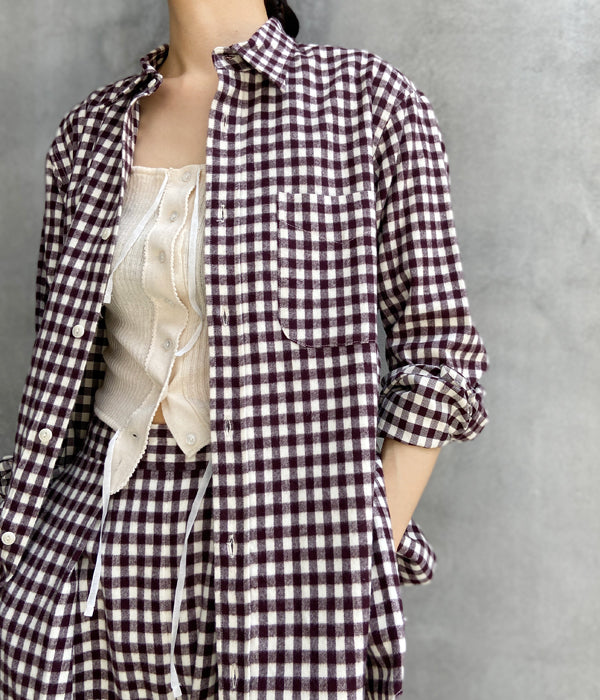 PHEENY/COTTON RAYON CHECK FLANNEL SHIRT(BURGUNDY)
