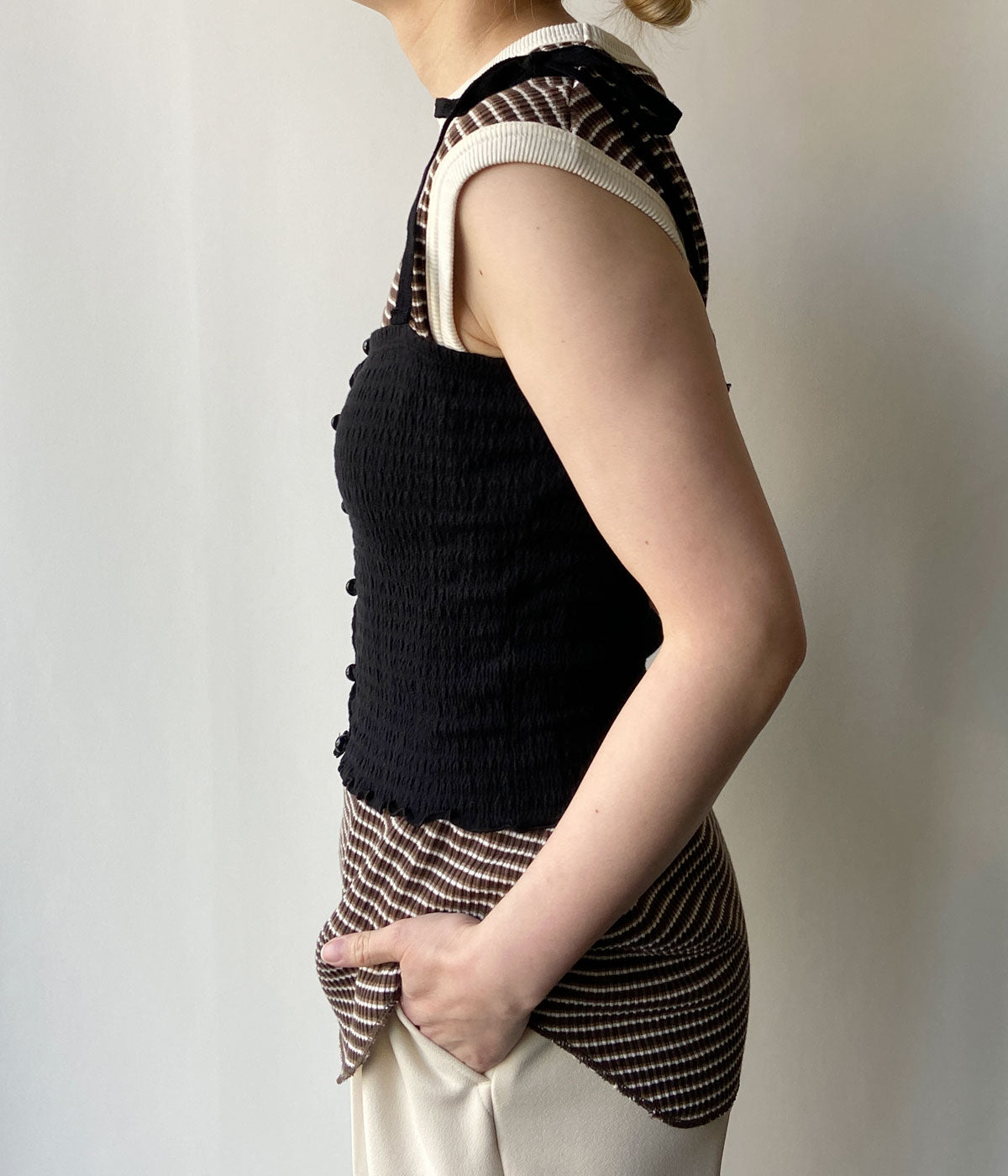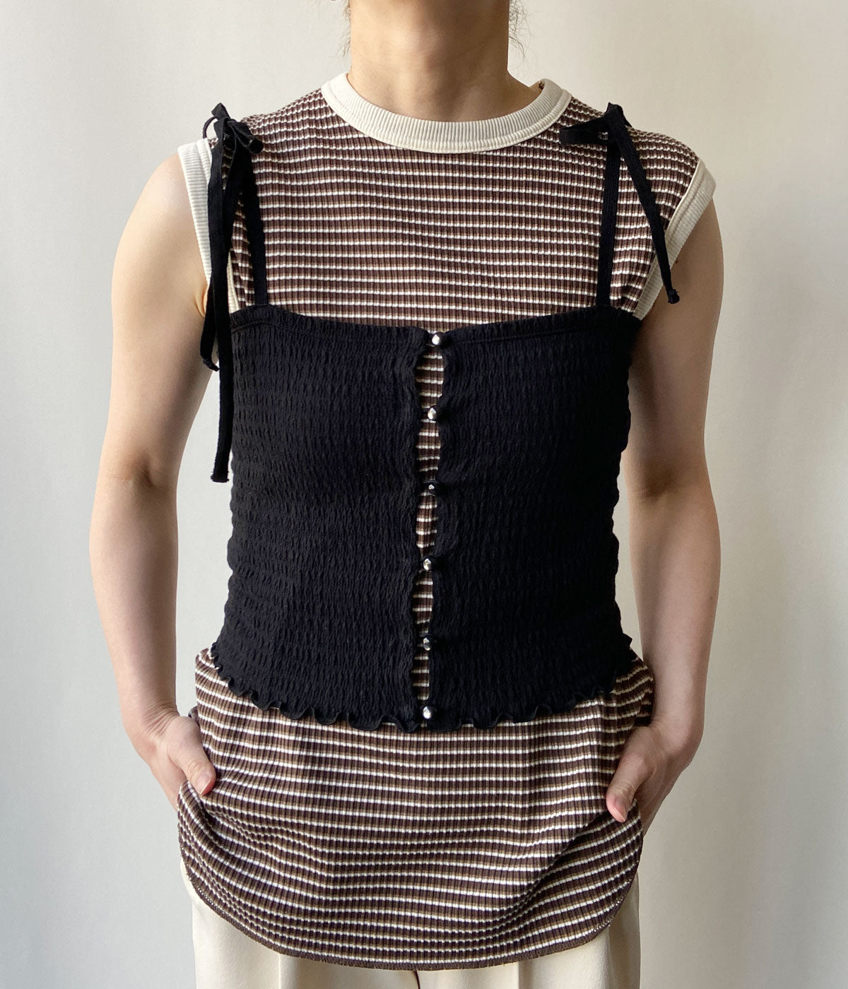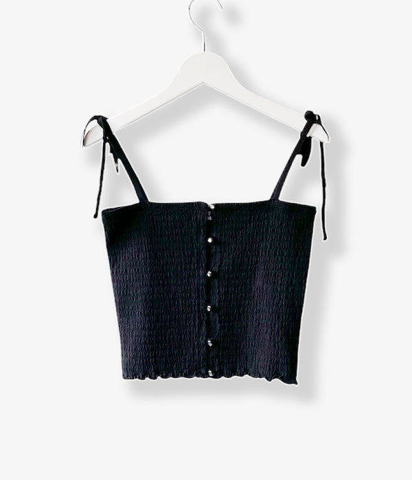 PHEENY/COTTON SHIRRING CAMISOLE(BLACK)