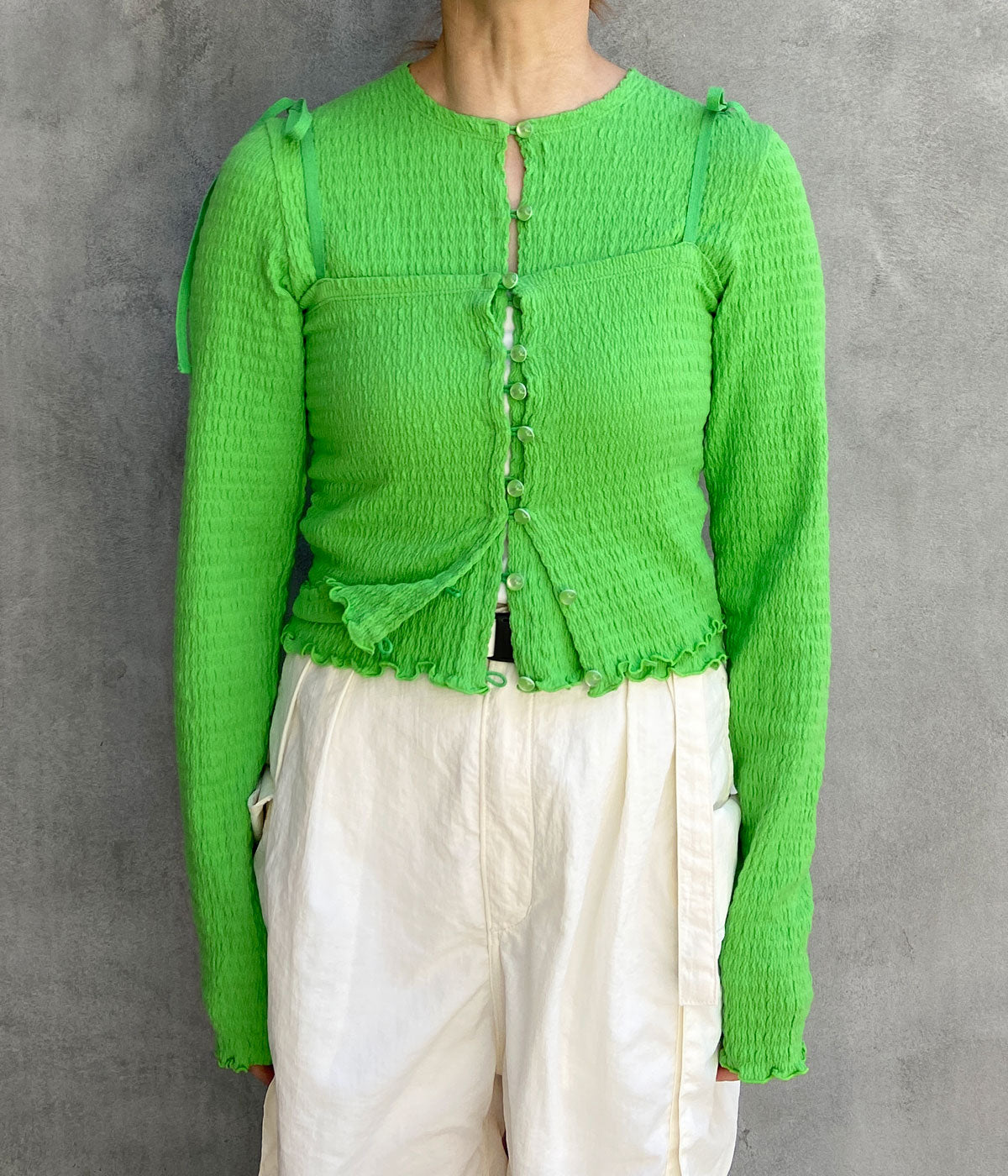 PHEENY/COTTON SHIRRING CAMISOLE(GREEN)