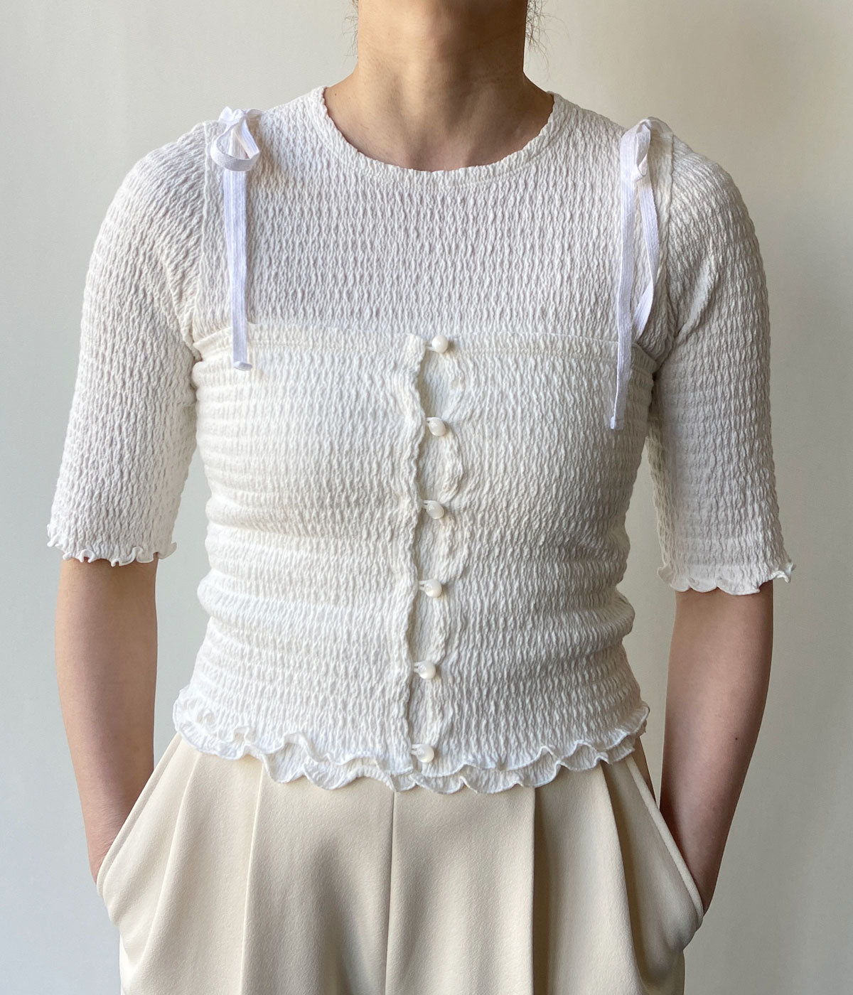 PHEENY/COTTON SHIRRING CAMISOLE(WHITE)