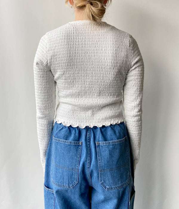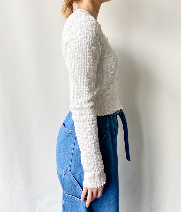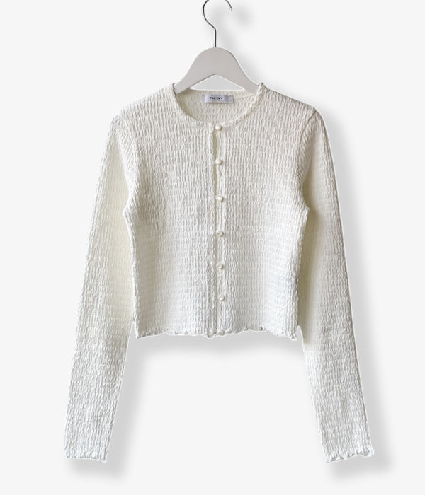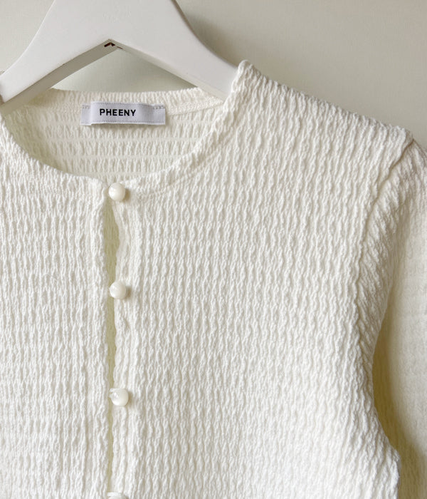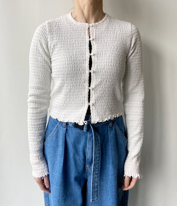 PHEENY/COTTON SHIRRING CARDIGAN(WHITE)