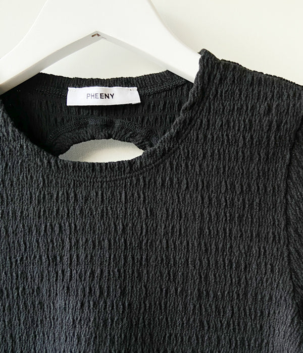 PHEENY/COTTON SHIRRING S/S(BLACK)