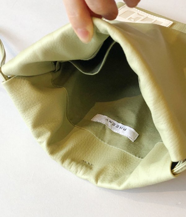 PHEENYからFAKE LEATHER PURSEが入荷しました。今シーズンを象徴するフォントが型押しされたオリジナルレザーパッチ付で裏地と内ポケットも完備のデイリーに使える巾着型BAG。キズや汚れに強く丈夫さのある、インテリアのファブリックにも使われるFAKE LEATHERを使用しています。
