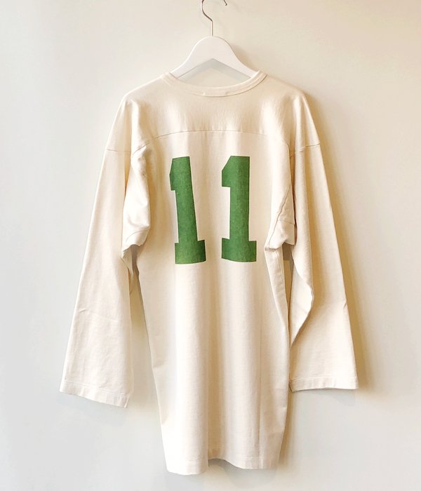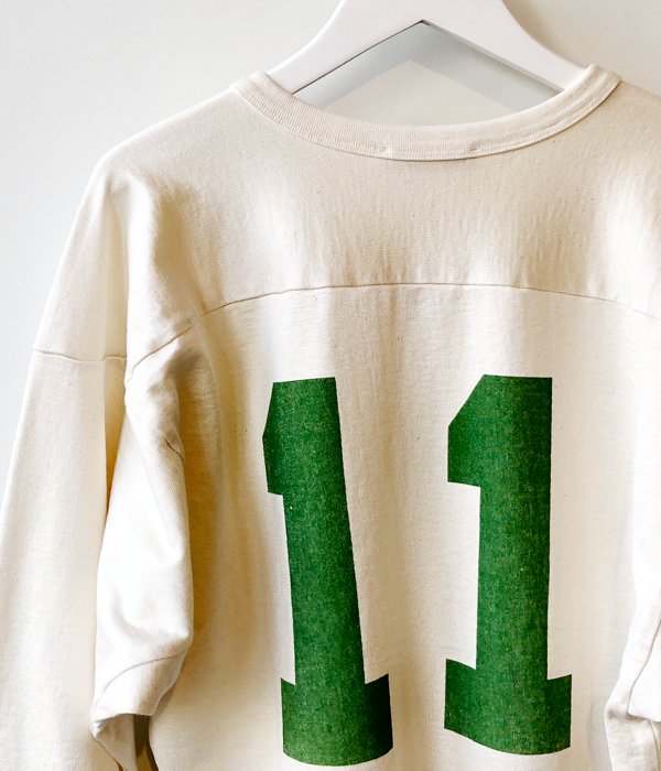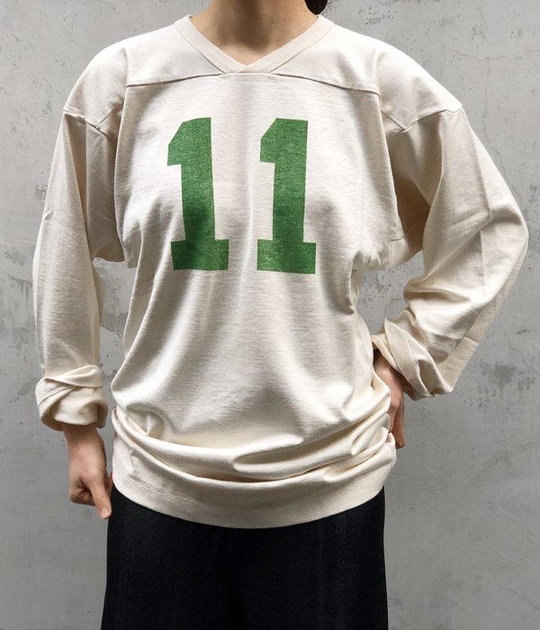 PHEENYからFOOTBALL L/S TEEが入荷しました。1950年代のChampionのフットボールTEEなどに使用されていたレーヨンコットンの光沢ある天竺をオリジナルで製作。デザイナーも普段から愛用しているフットボールTEEにPHEENYらしいエッセンスを加え仕上げています。敢えてスラックスやスカートといったクリーンな印象のITEMに合わせるのがおすすめ。
