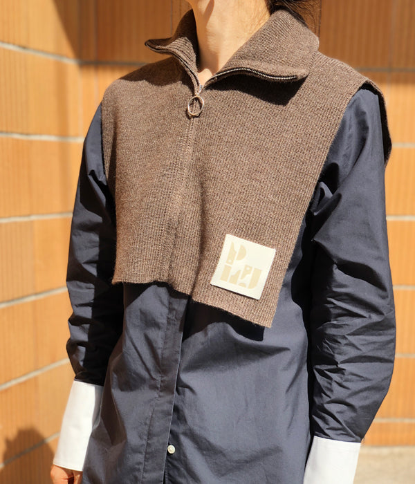 PHEENY/HALF CARDIGAN ZIP SNOOD(BROWN)