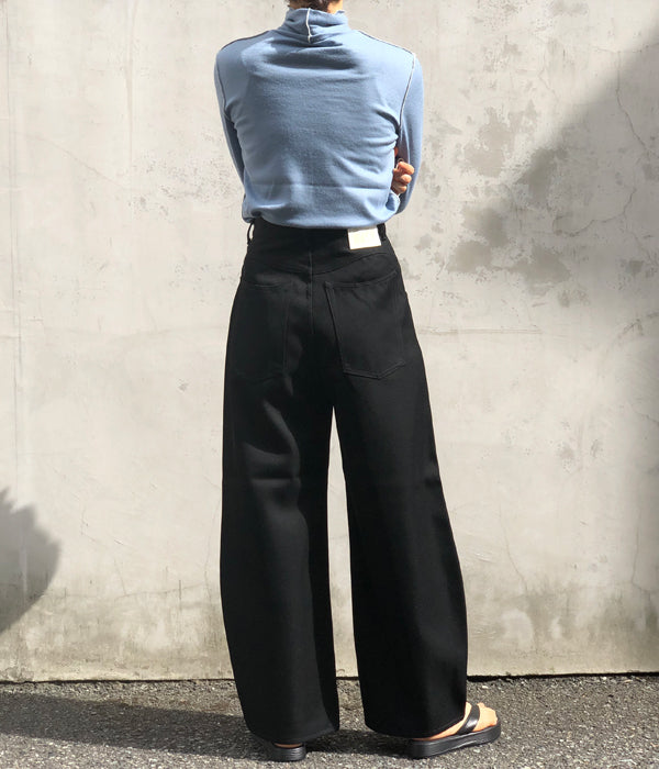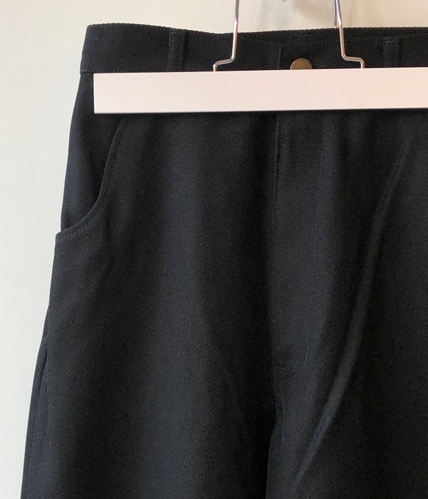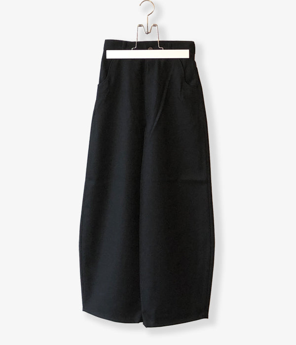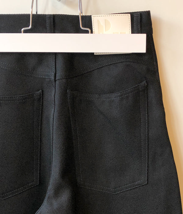 PHEENYからHARD KERSEY HIGH WAIST BALLON PANTSが入荷しました。5ポケットジーンズのデザインをスラックス生地に落とし込んだ新型パンツ。梳毛糸を高密度で織り上げ更に加工を施し、高級感のある風合いに仕上げたオリジナル生地を使用しています。ハリのある生地感を活かし、ハイウエストの位置から裾に向かってカーブを描く美しいバルーンシルエットが特長。オリジナルレザーパッチ付でバックスタイルの見え方にも拘った一本となっています。