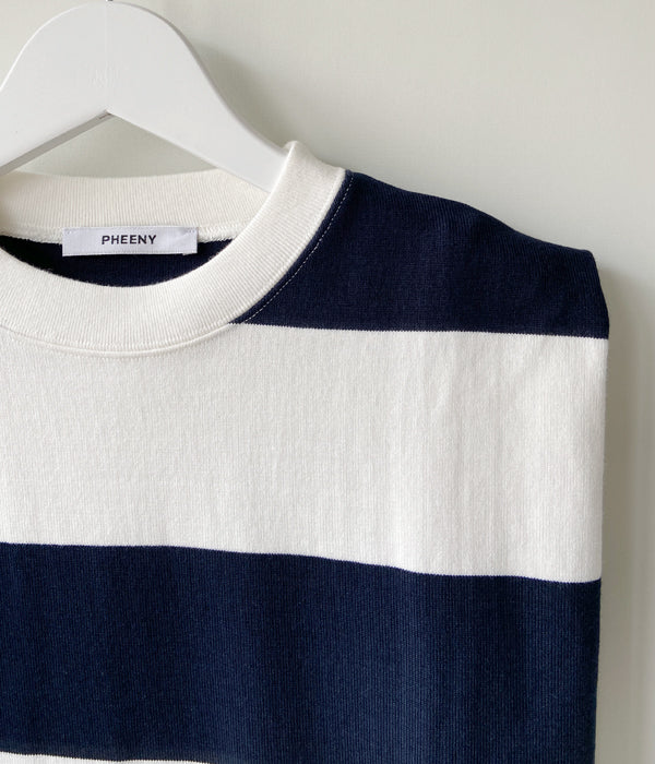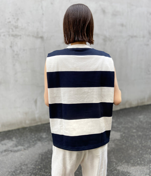 PHEENYからHEAVY WEIGHT BORDER N/Sが入荷しました。肩にタックを入れボリュームを持たせたノースリーブ。裾に向かってテーパードしたシルエットで着丈を短めに設定しているのでボトムを選ばずに着用できます。タックインするのもおすすめ。