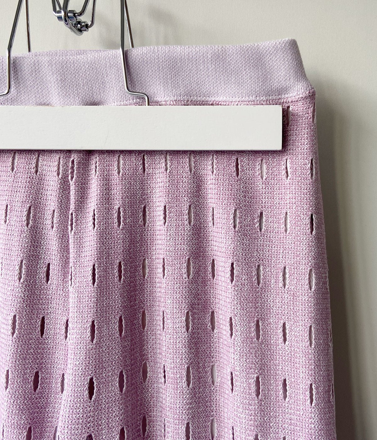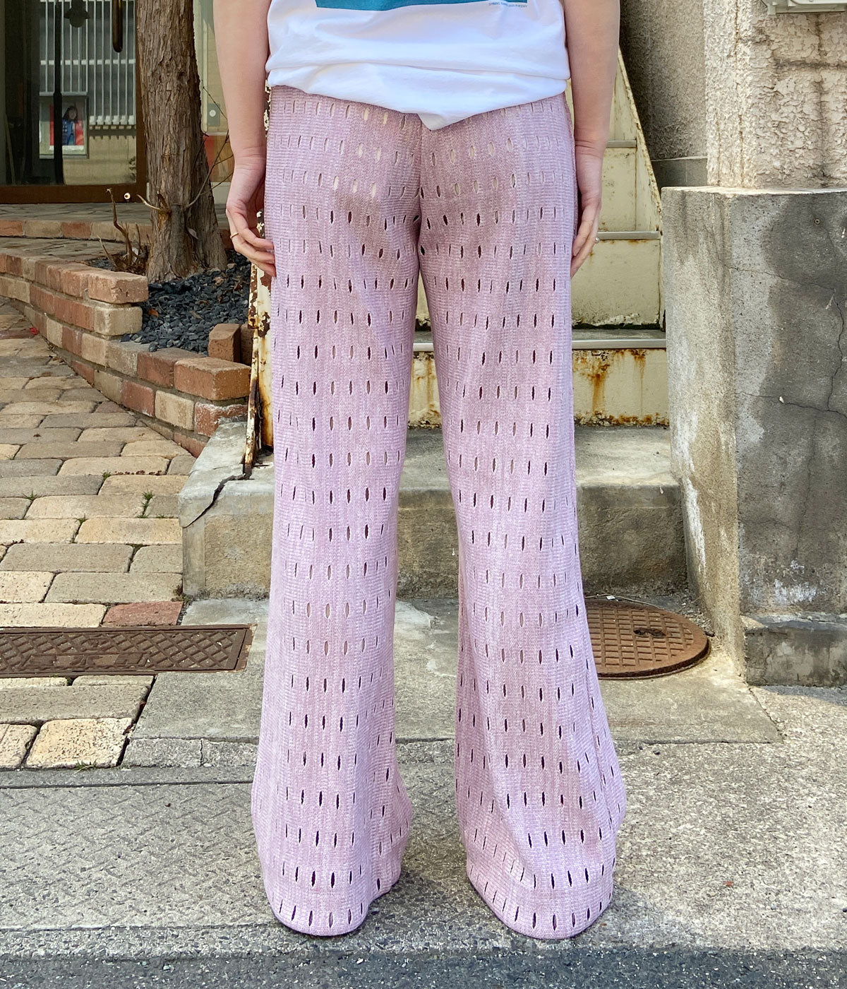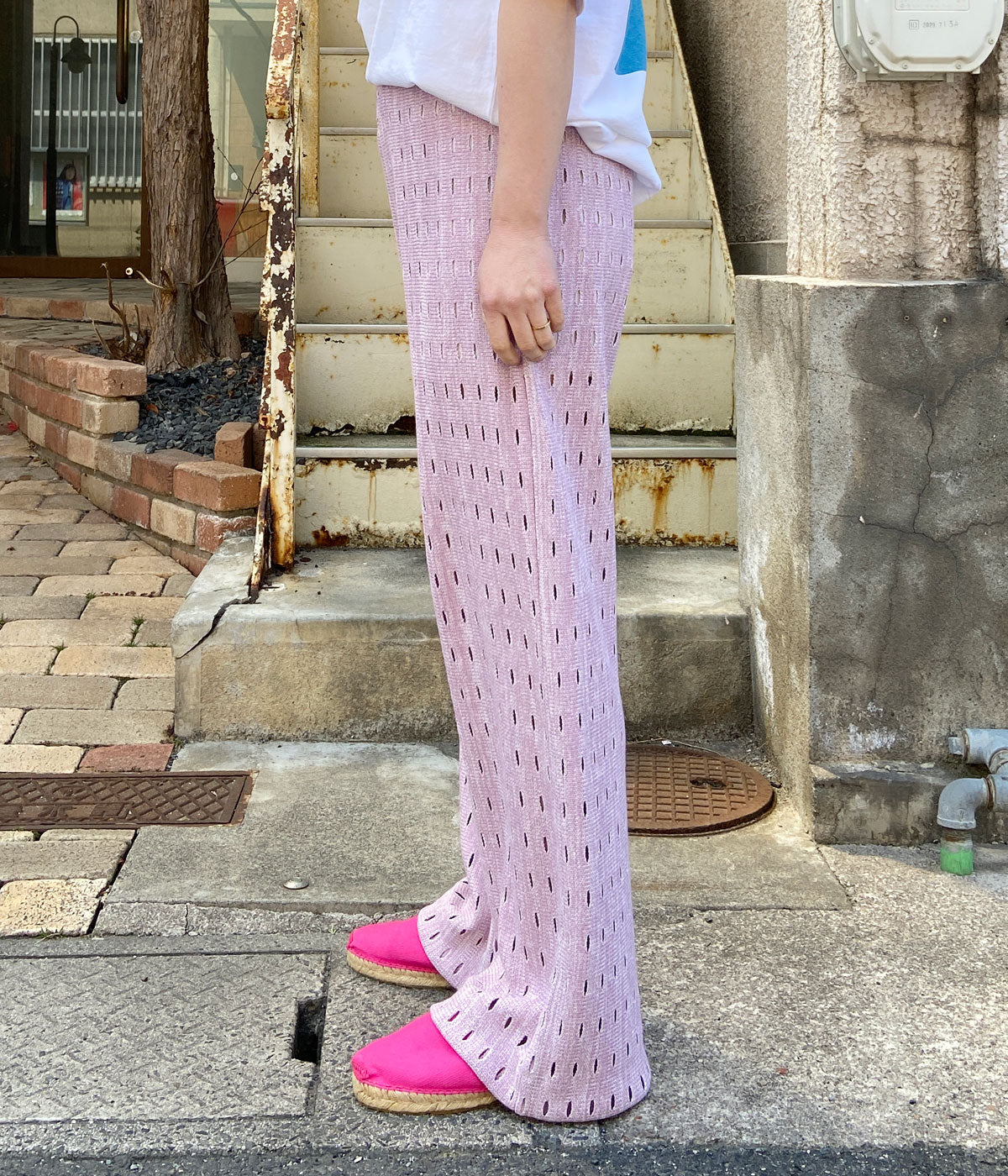 PHEENYからHOLE RUSSELL WIDE PANTSが入荷しました。日本に数台しかないローゲージのラッセル編機を使用した希少なホールラッセル生地のパンツ。ドット柄のように編まれたホールがユニークなワイドパンツに仕上がっています。ウエストはゴムでリラクシーな履き心地。エスパドリーユやサンダルに合わせて。裏地付き。