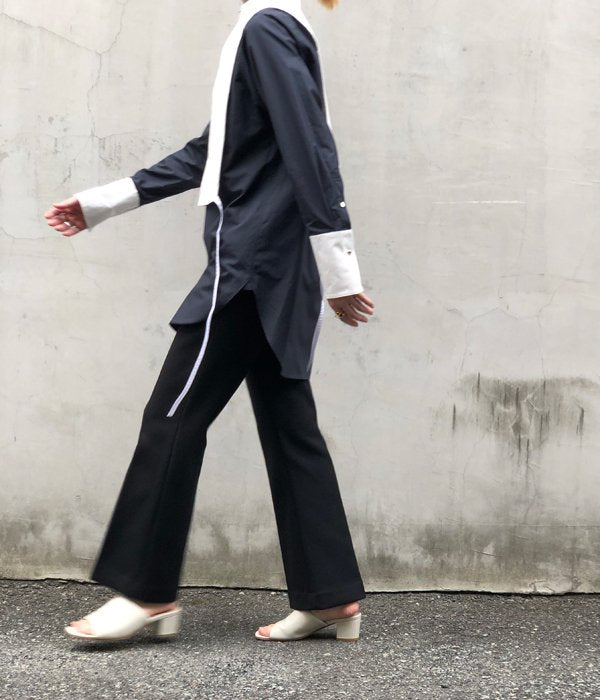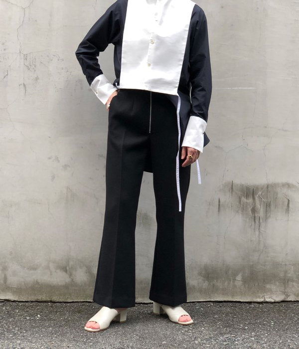 PHEENY/KERSEY HIGH WAIST SEMI FLARED SLACKS(BLACK)