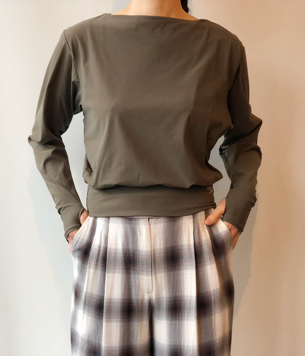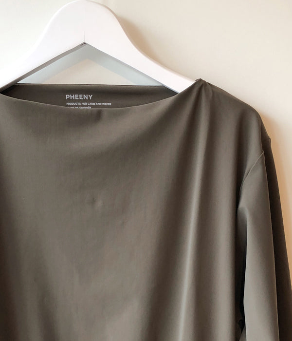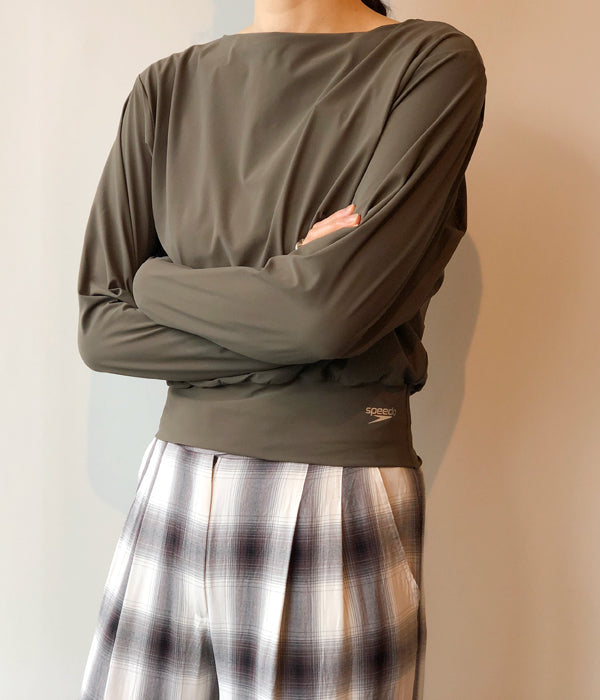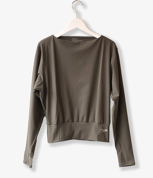 PHEENYからLAND AND WATER UV TOPが入荷しました。「Product Twelve」とスイムウェアで有名な「speedo」とのトリプルコラボITEM。着用時の美しさと着心地の良さを兼ね備えた"Sensitive"というイタリアのEURO JERSEY社製ナイロン素材を使用。すっきりとしたボートネック、たっぷりとした身頃と袖、ショート丈のデザインでスタイル良く見せてくれます。UVカット機能付きなのでデイリーユースは勿論、ラッシュガードとして水着の上から着用したり夏の冷房対策にも使える優れもの。
