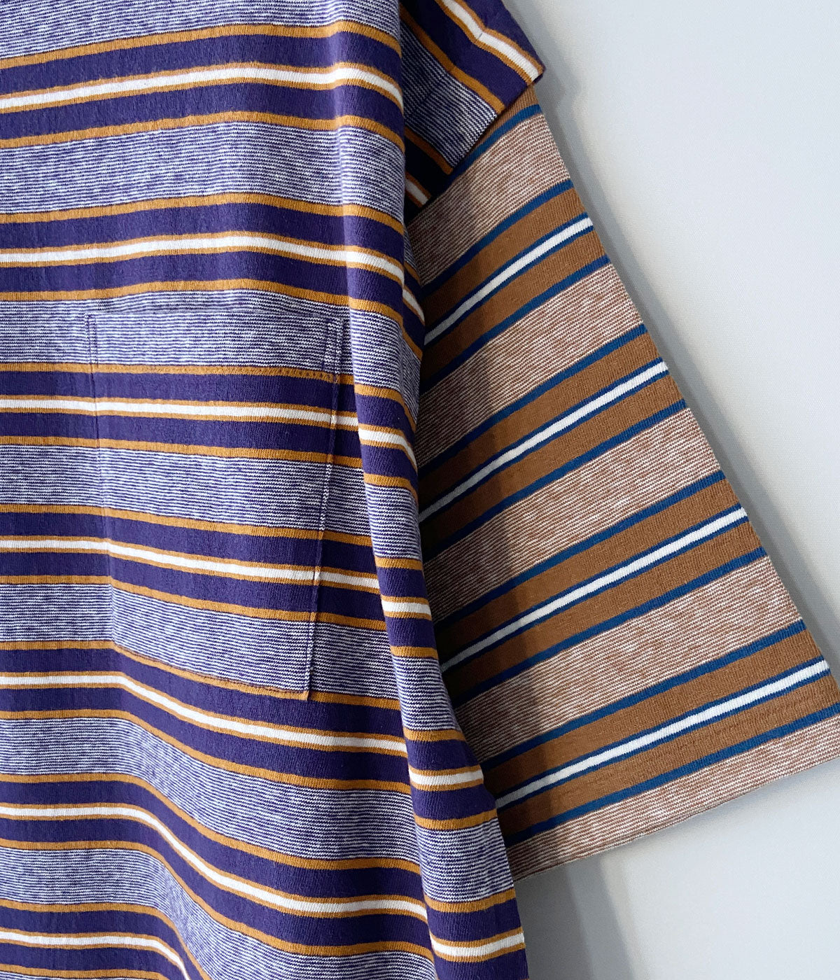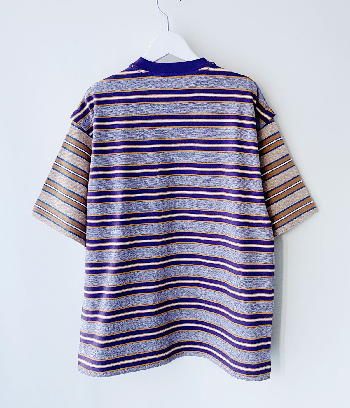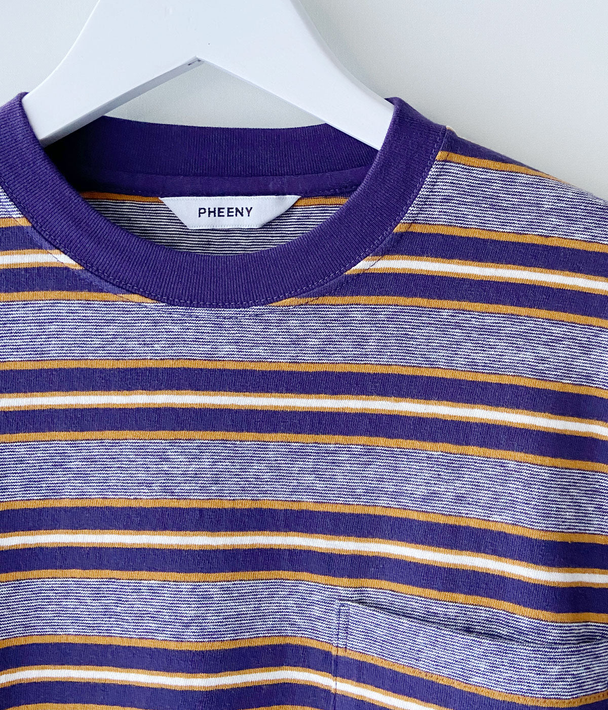 PHEENYからMULTI BORDER LAYERED S/Sが入荷しました。リラックス感のあるボクシーなシルエットのTシャツ。レイヤード風の袖ディテールがポイントの一着です。70年代を彷彿とさせるヴィンテージライクなボーダーでリラックスしたコーディネートに最適です。