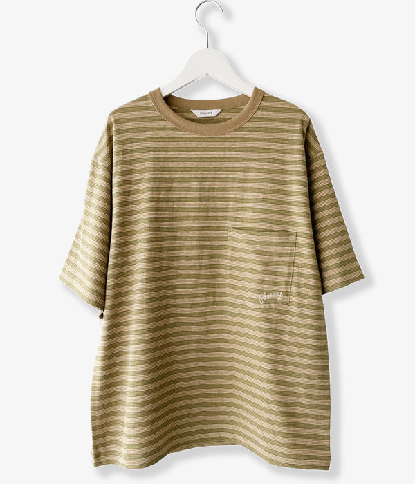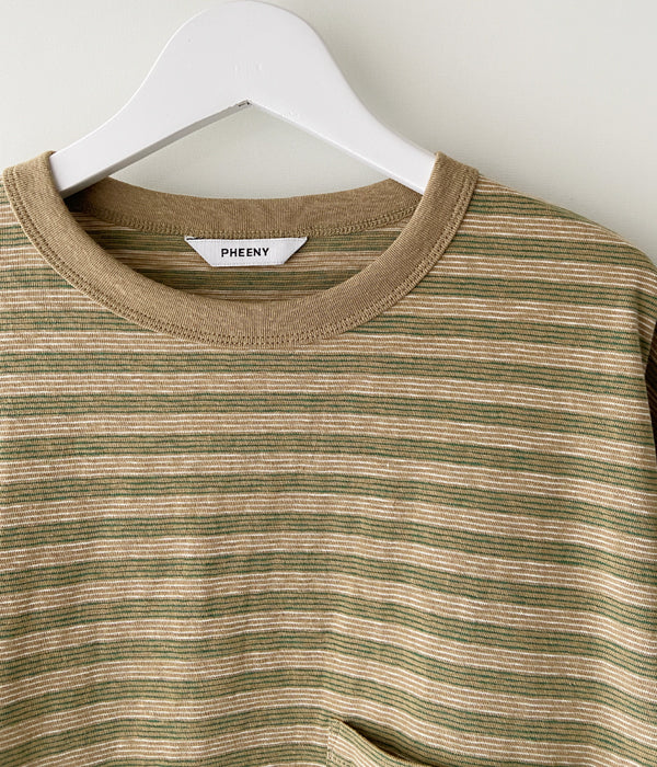 PHEENY/MULTI BORDER POCKET TEE(KHAKI)