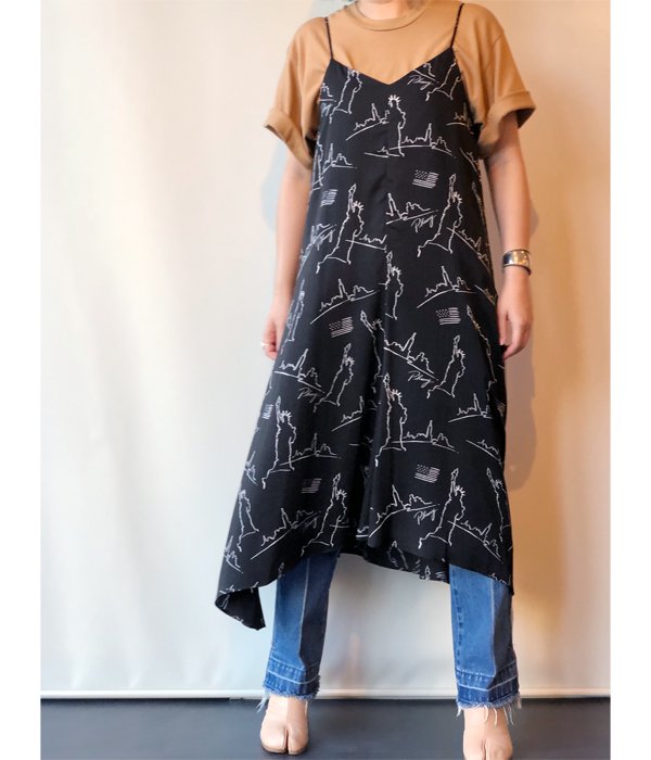 PHEENY/NYC PRINTED CAMISOLE DRESS(BLACK)