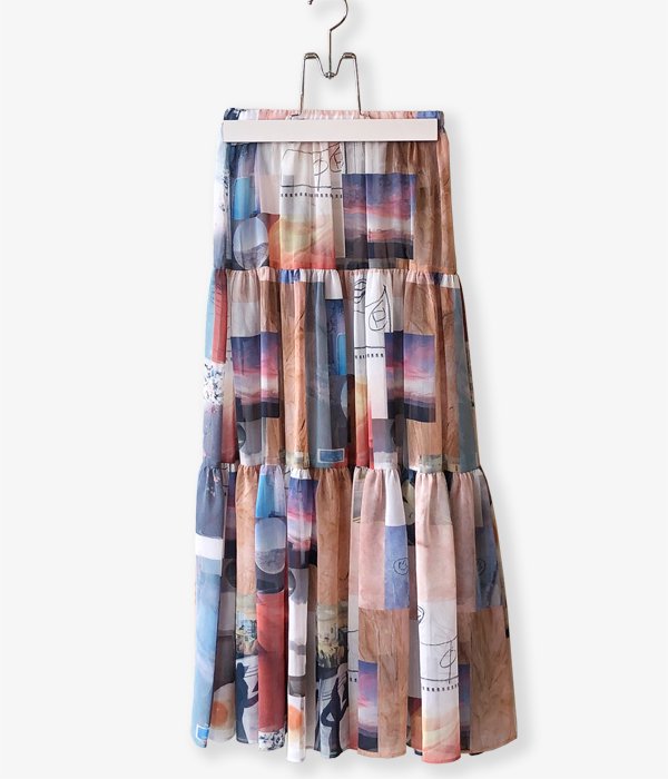 PHEENY/PRINT CHIFFON TIERED SKIRT(MULTI)